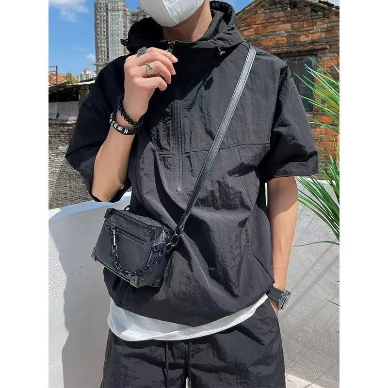 Summer Cargo Style Set Men's Casual Hooded Solid Short Sleeve T-shirt Shorts Loose Fashion High Quality Handsome Sweatshirt Suit