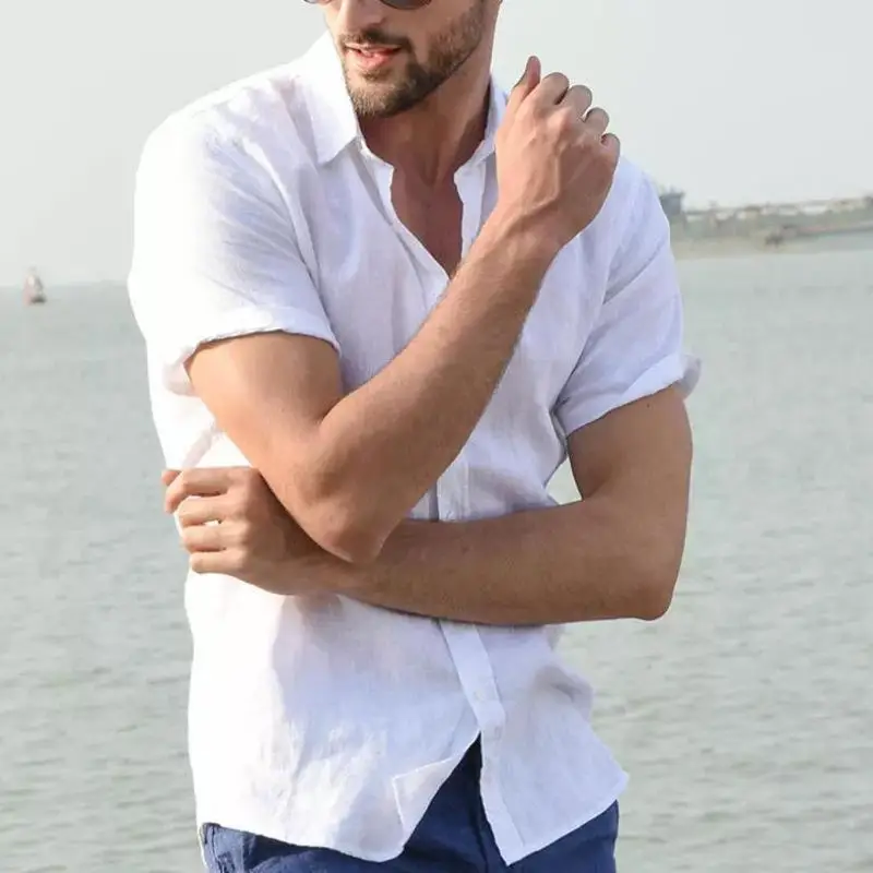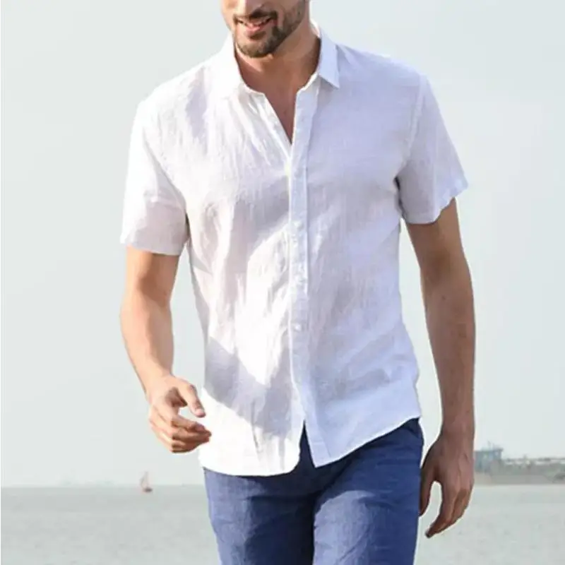Summer Cotton Linen Shirts For Men Casual Short Sleeved Shirts Blouses Solid Turn-Down Collar Formal Beach Shirts Male Clothing