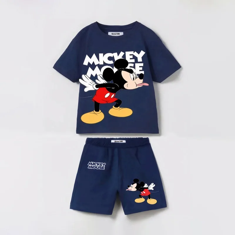 Summer Fashion Mickey Boys Clothes Set Short Sleeve Tee + Shorts Kids Toddler Outfits