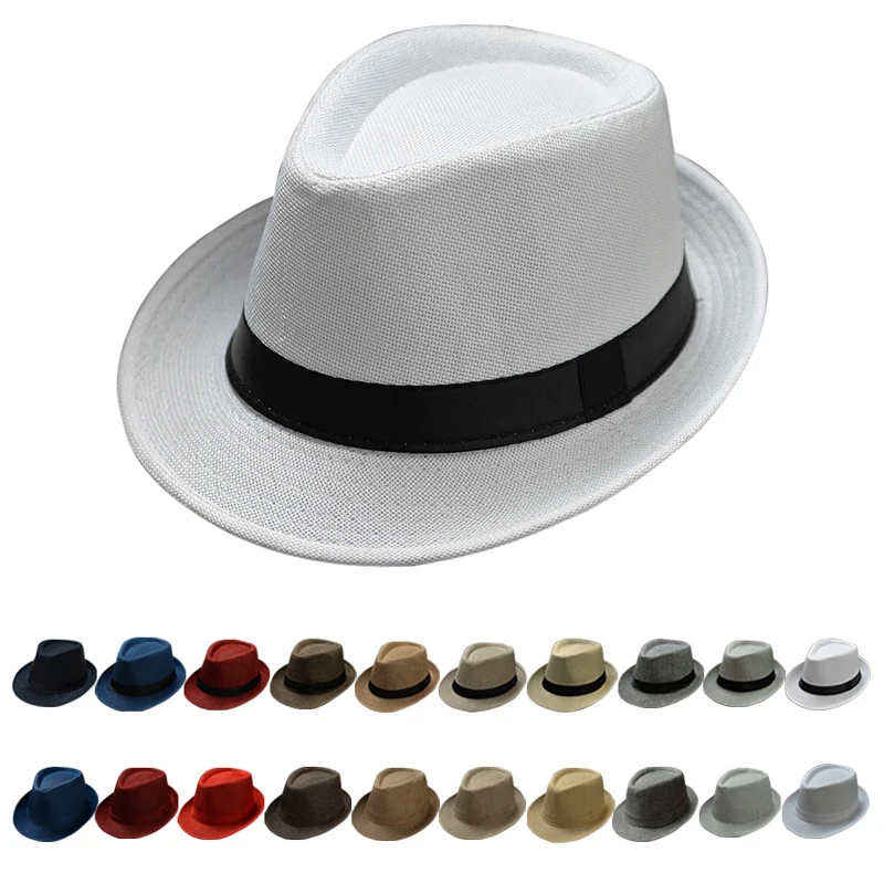 Summer Fedora Hat for Men Fashionable Elegant Vintage Black Women White Red Brim Panama Top Jazz Beach Unisex Classic Cap
