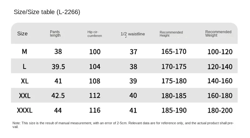 1. Because every person's body shape is different, the recommended height and weight can only be used as a reference.