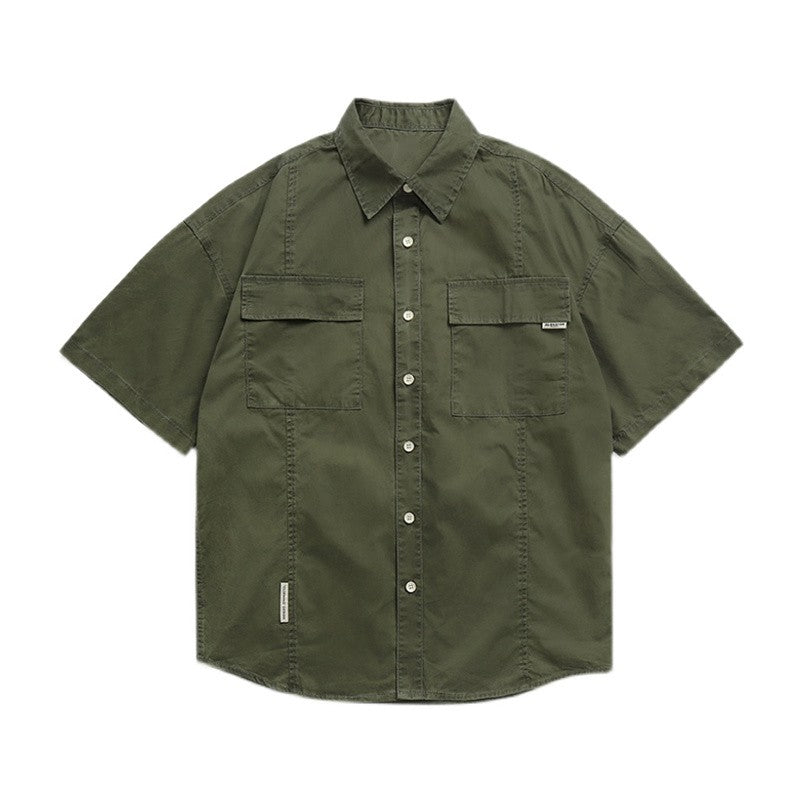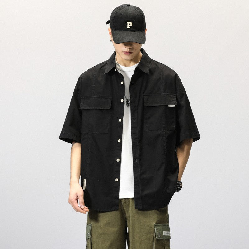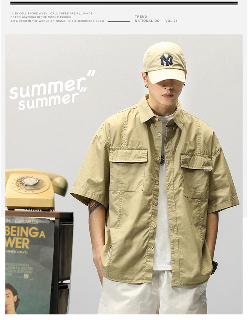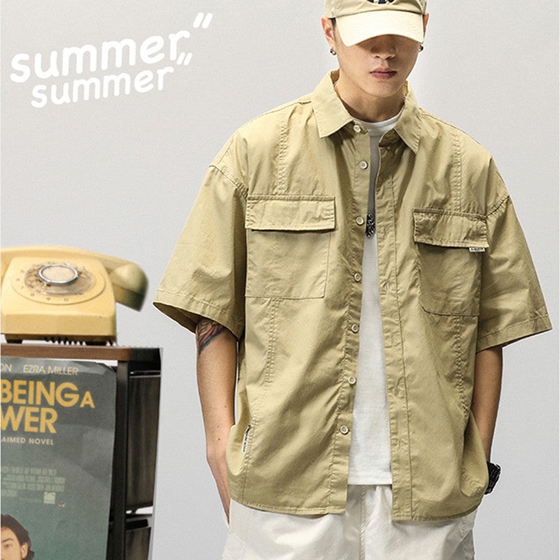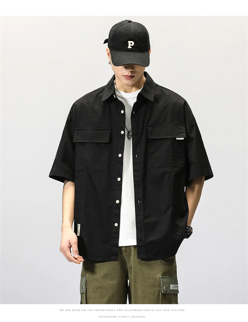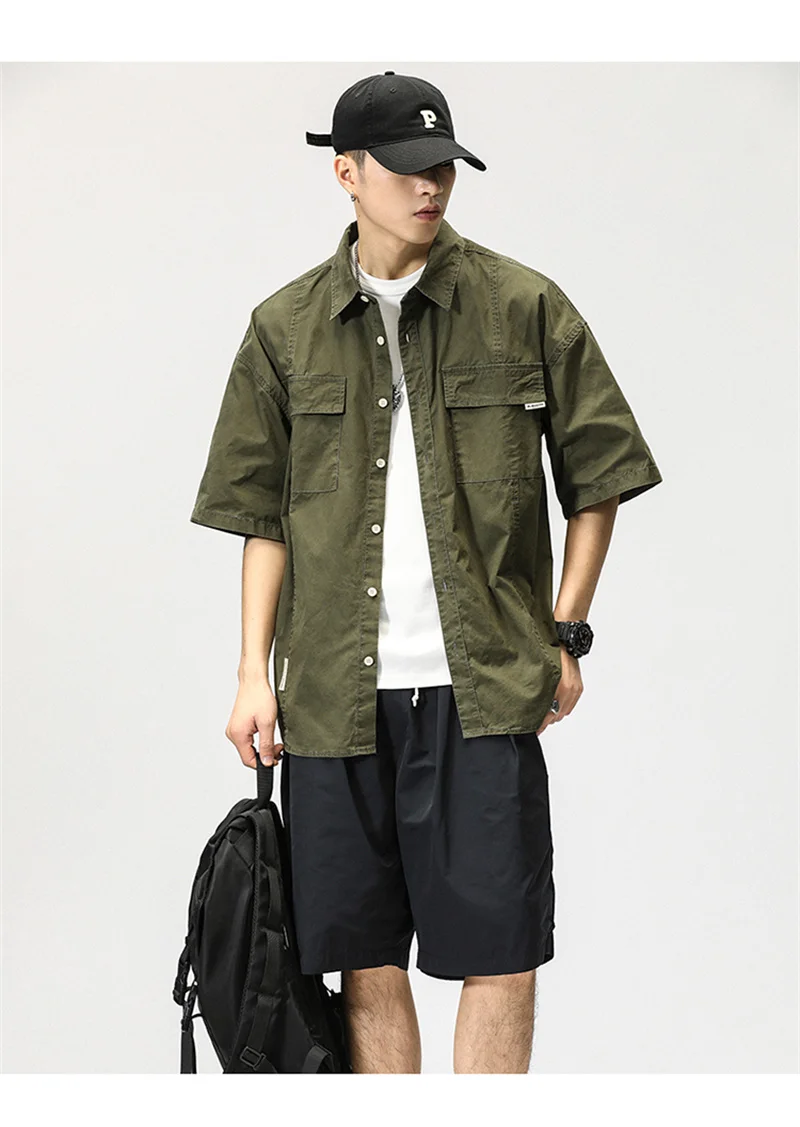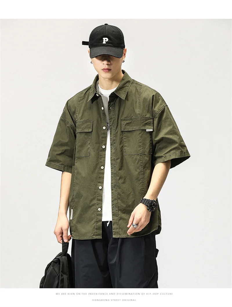 Summer Japanese Cargo Short Sleeve Shirt Men's Pockets Button Turn-down Collar Shirts Fashion Casual Cardigan blouses Tops