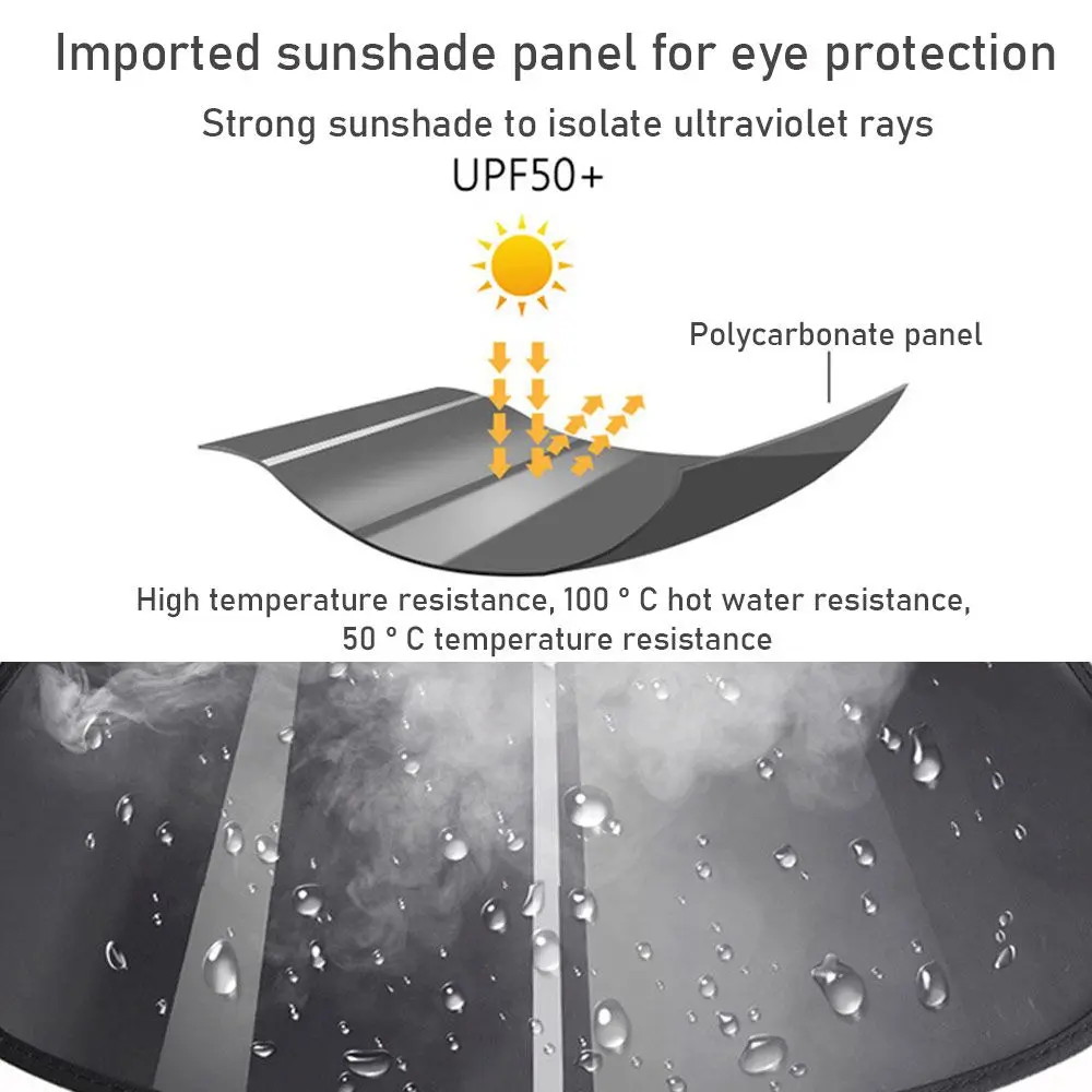 Design: Full face shield, 360 degrees surround to avoid your face exposed under the sun.