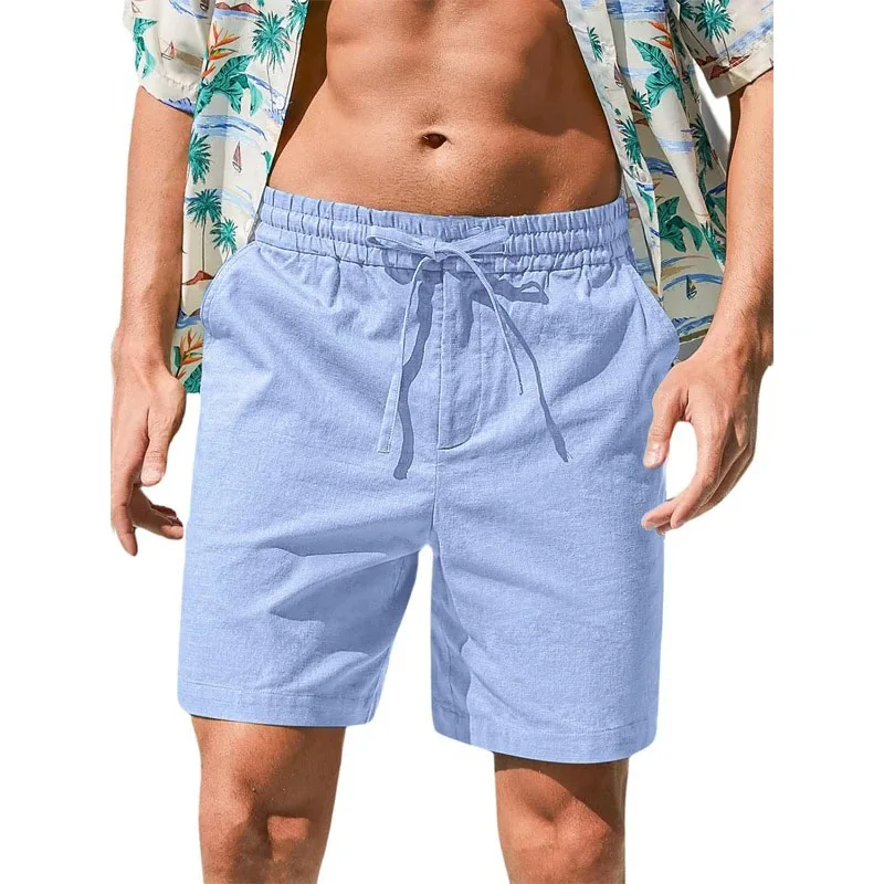 Name: Summer Men's Cotton Linen Breathable Shorts Lightweight Beach Short Pants Casual Cozy Fashion Elastic Waist Male Short Trousers
