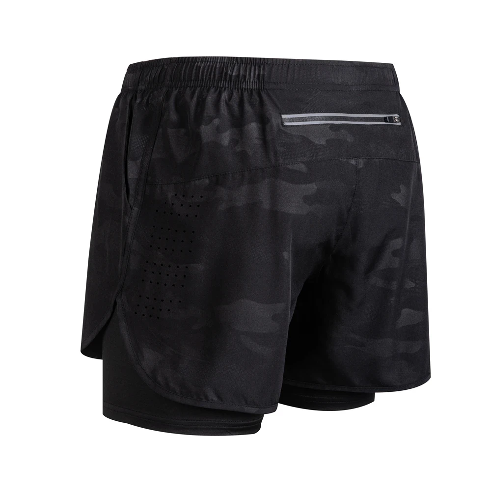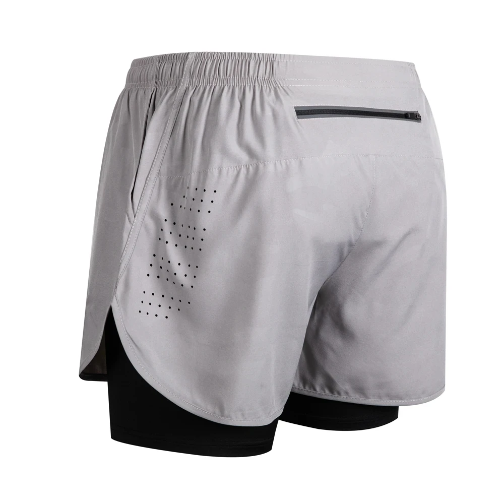 Summer men's reflective running shorts Fitness quick drying double-layer shorts Men's exercise training bodybuilding shorts