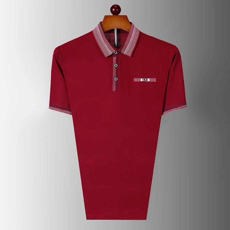 Summer men's short sleeved pure cotton lapel T-shirt polo shirt, middle-aged and elderly loose casual striped T-shirt