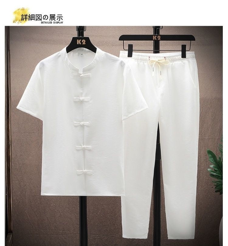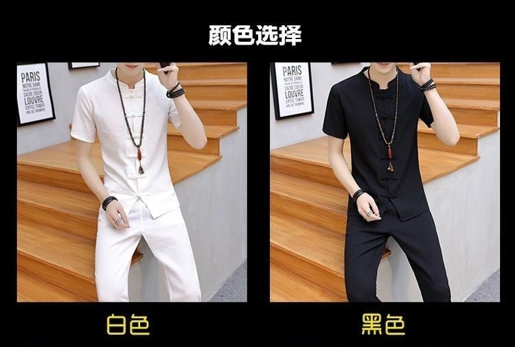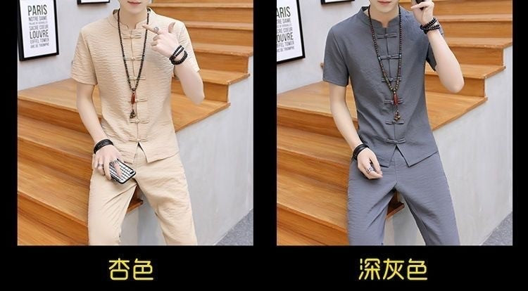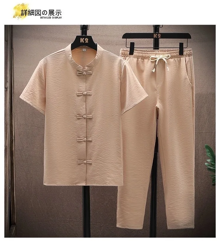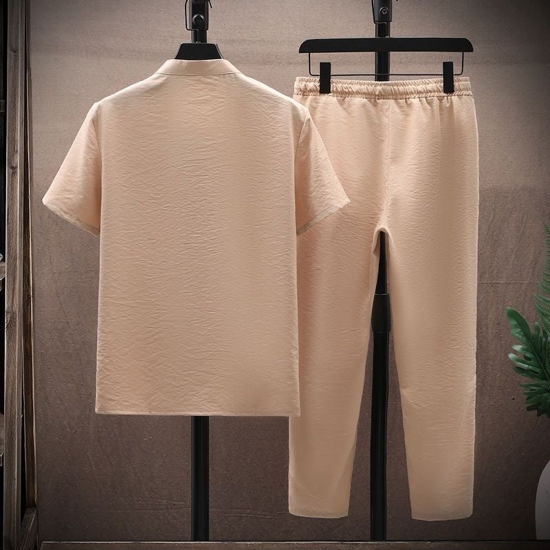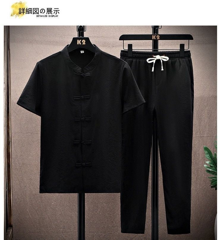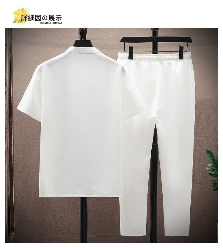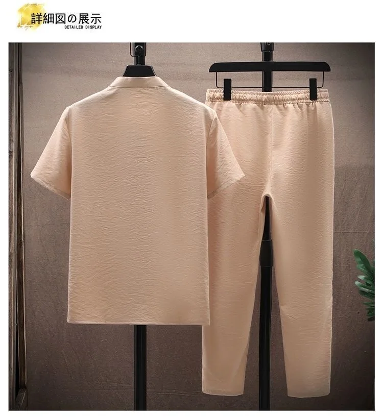 Summer New Fashion Solid Color Breathable Cotton and Linen Suit Men's Leisure Loose Sports Large Size High-Grade Two-Piece Set