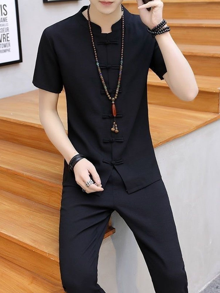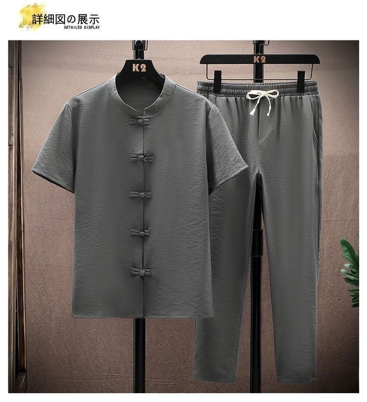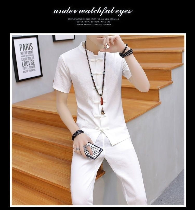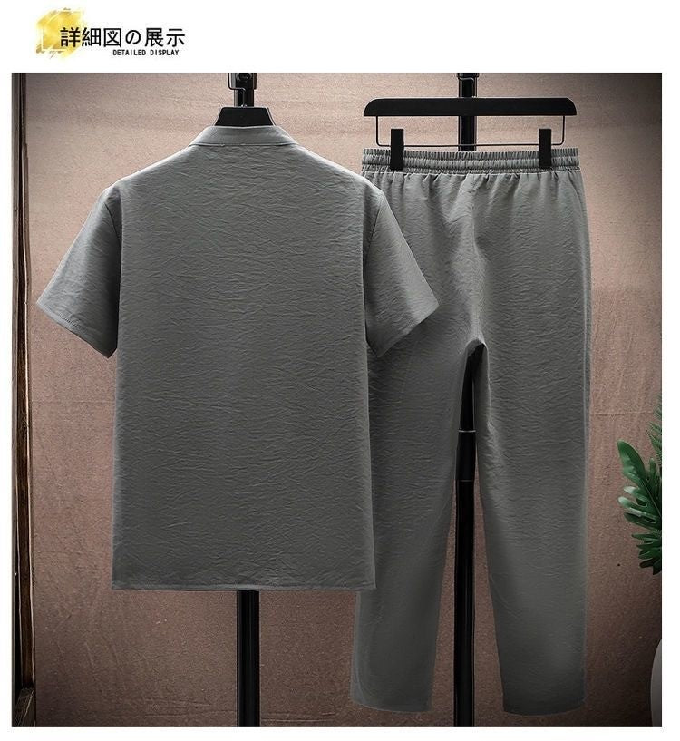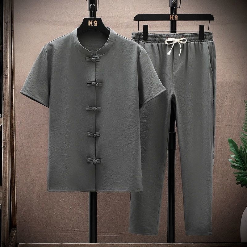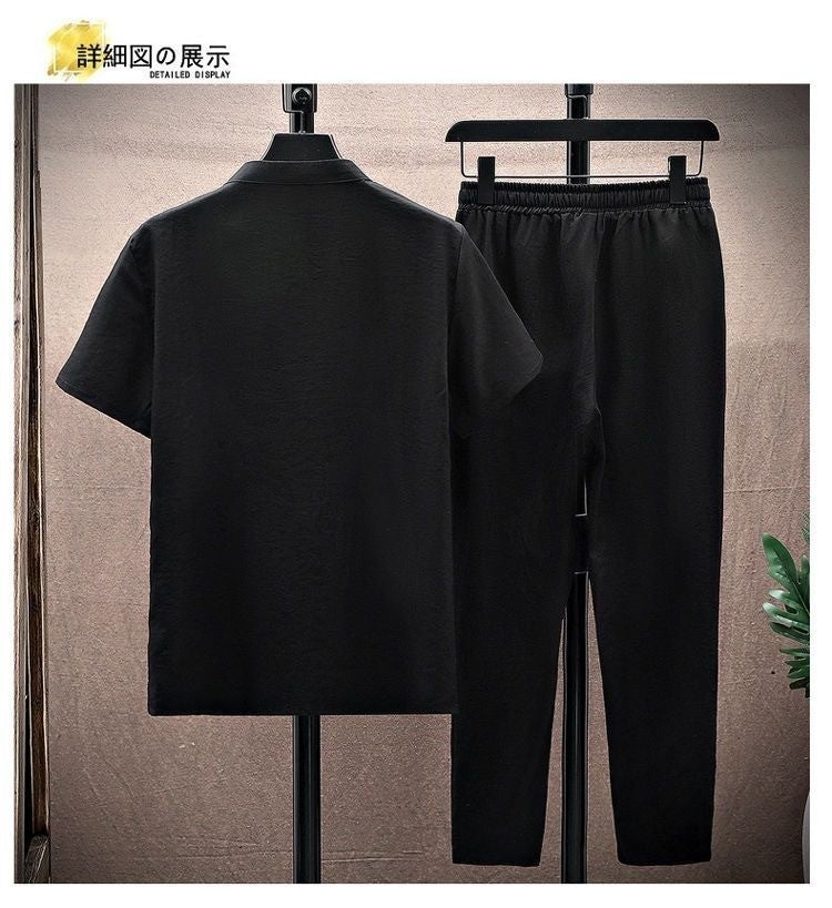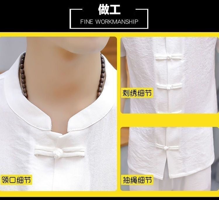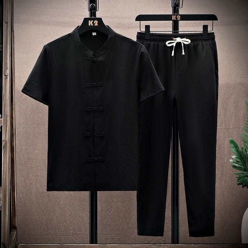 Summer New Fashion Solid Color Breathable Cotton and Linen Suit Men's Leisure Loose Sports Large Size High-Grade Two-Piece Set
