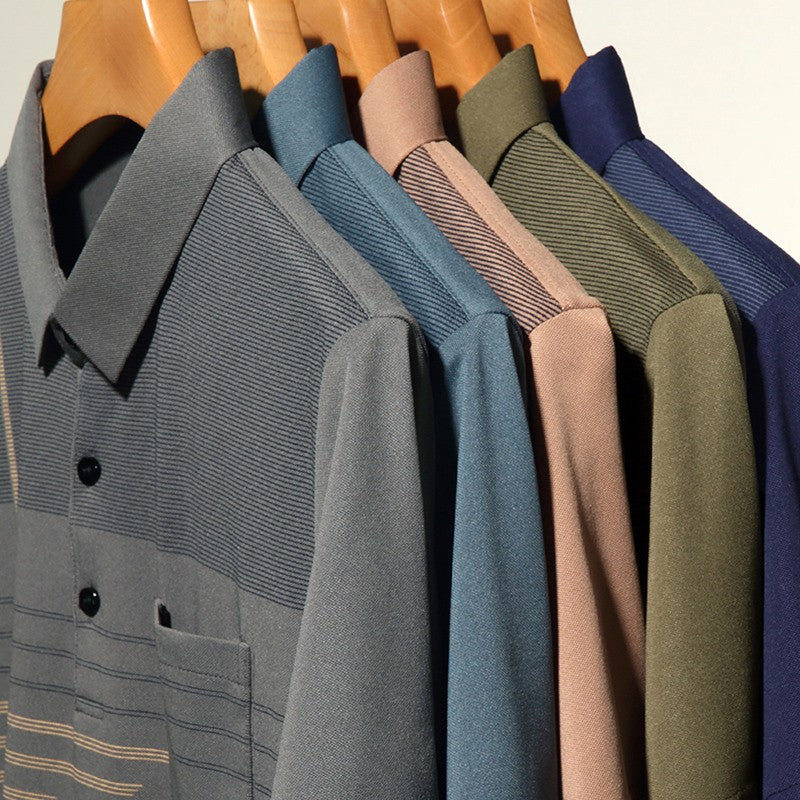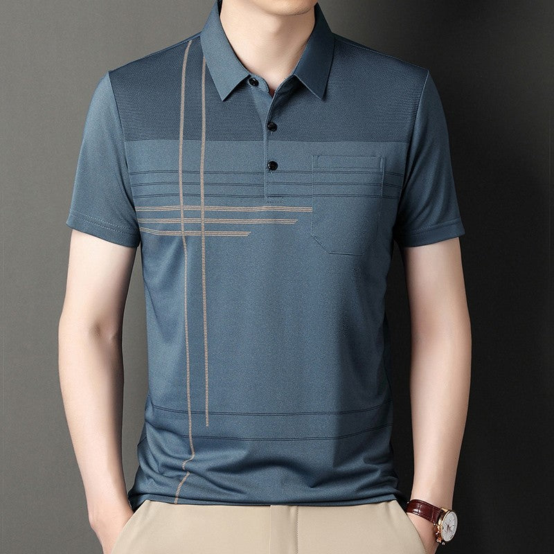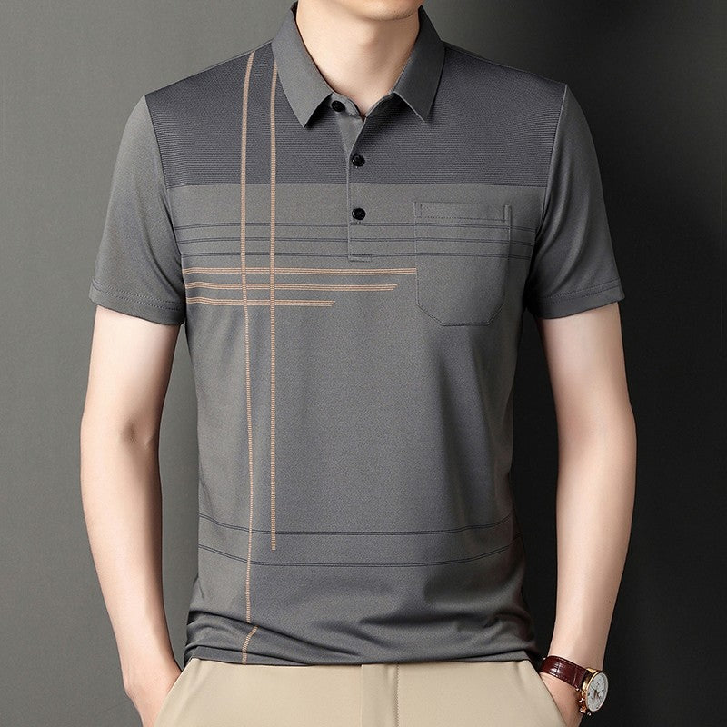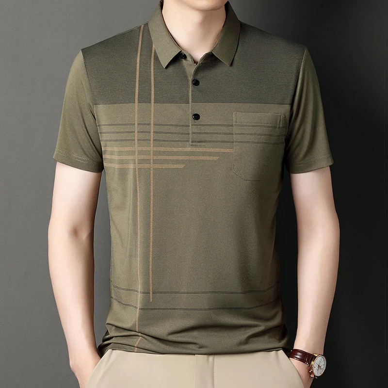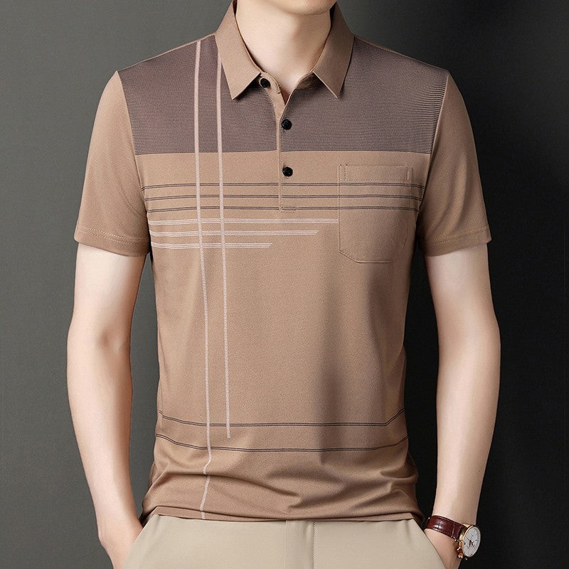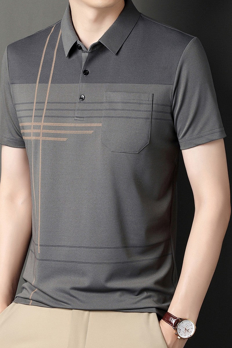 Summer New Men's Color Blocking Polo Shirt Pocket Button Up T-shirt Casual Slim Fit Comfortable Short Sleeved Breathable Top