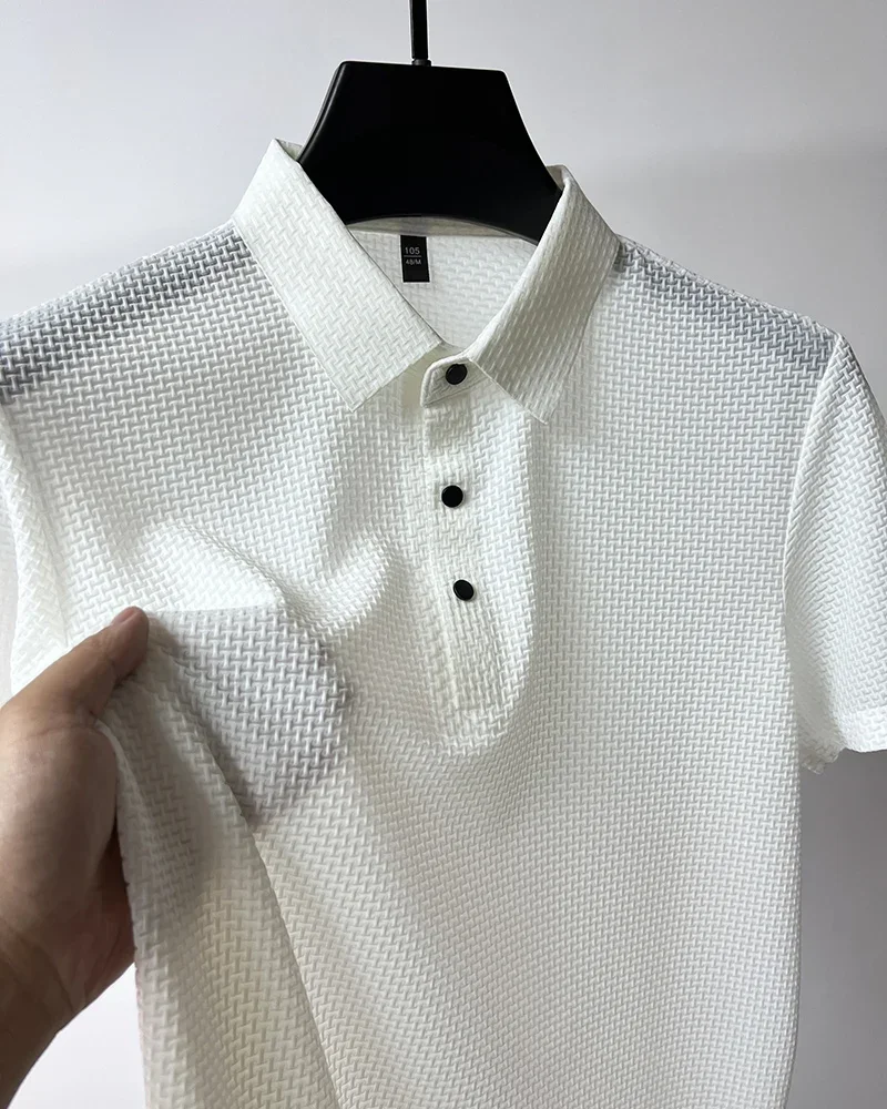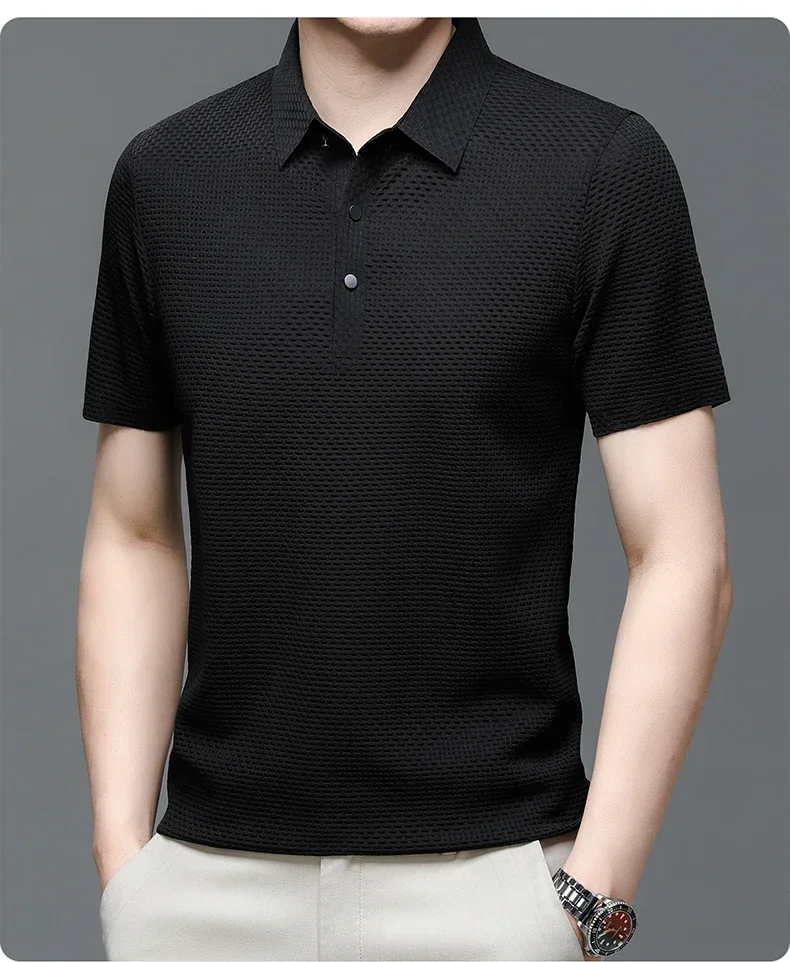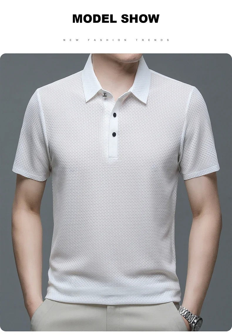 Summer New Men's Lop-up Hollow Short-sleeved Polo Tee Shirt Ice Silk Breathable Business Fashion T-Shirt Male Brand Clothes