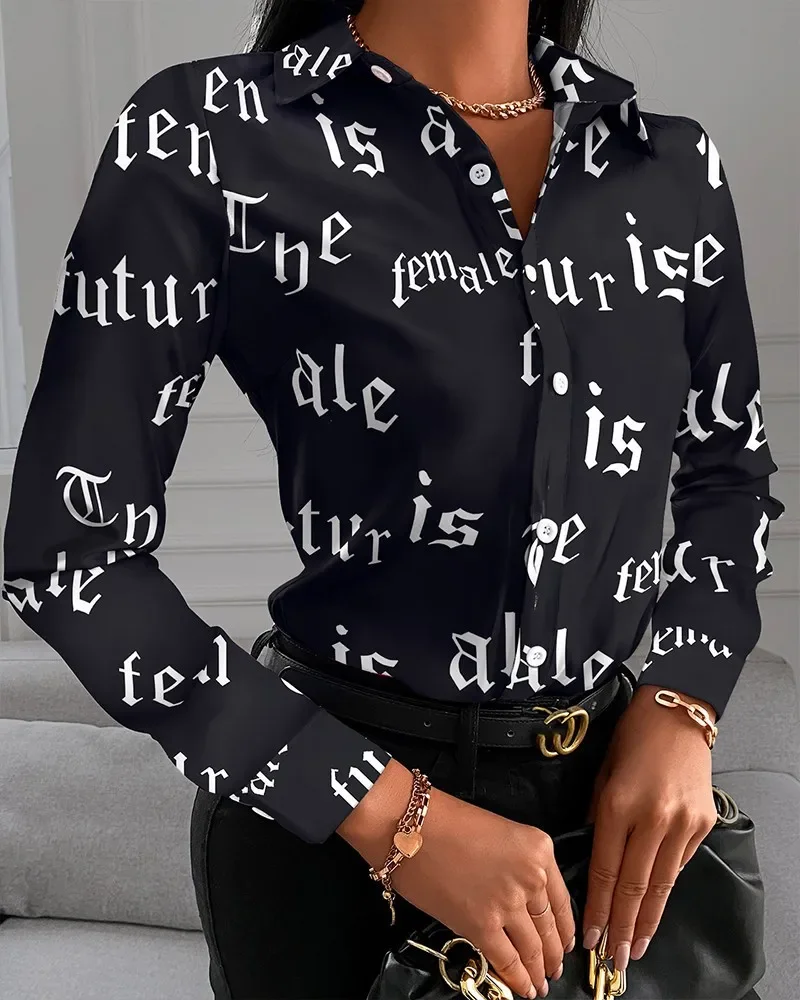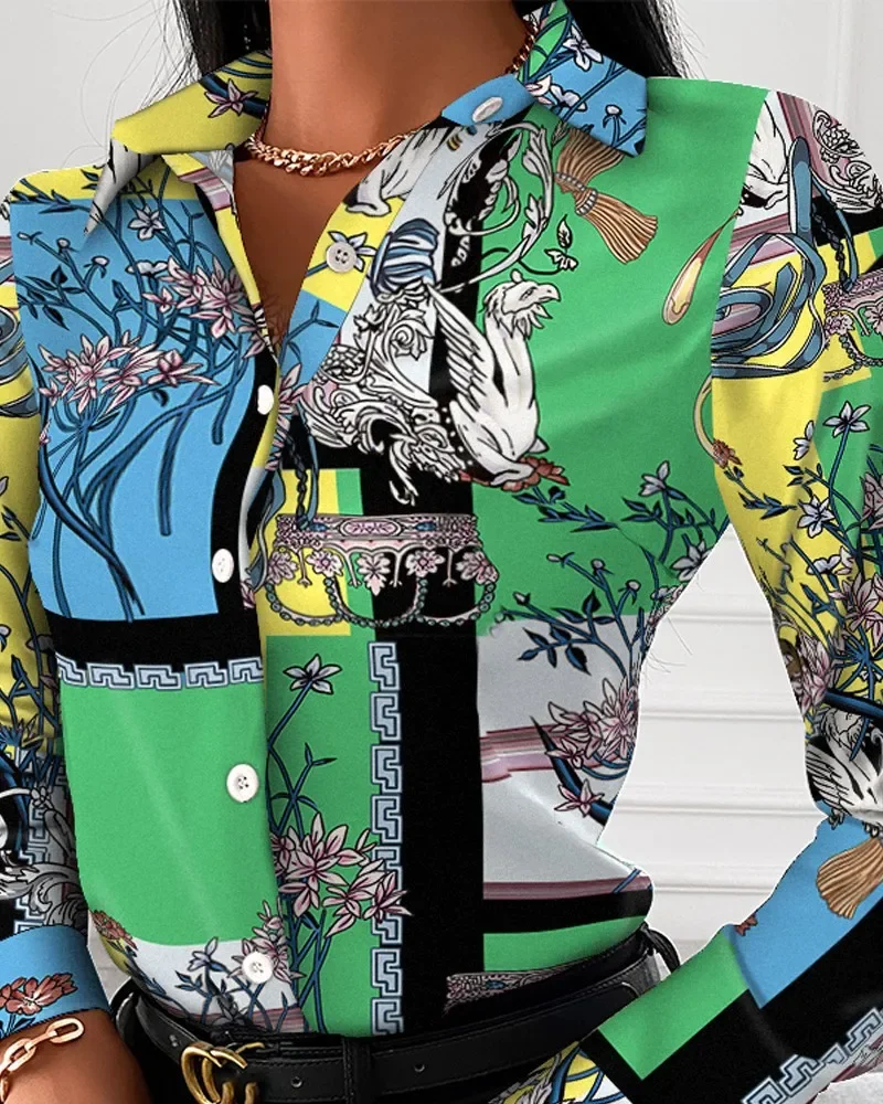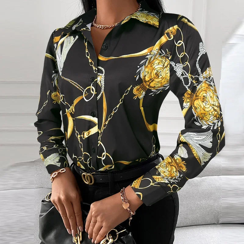 Summer New Women's Long-sleeved Shirt, Single-breasted Printed Shirts Fashion Casual Tops Camisa Female Chemise S-XXL