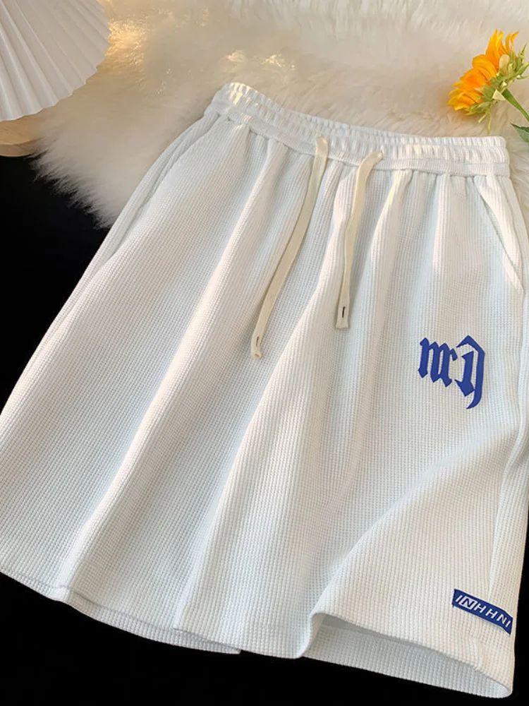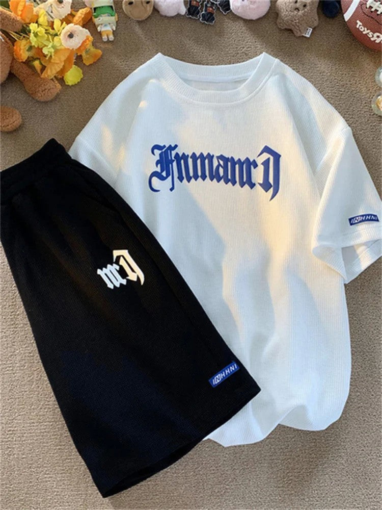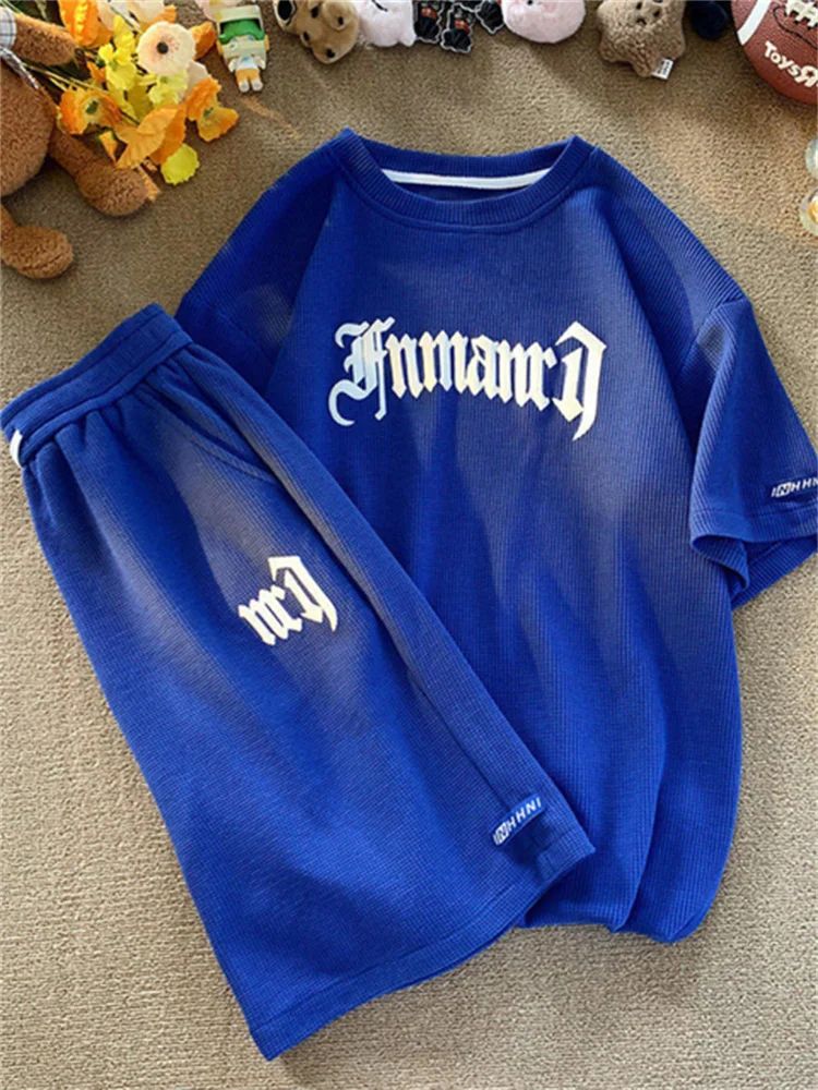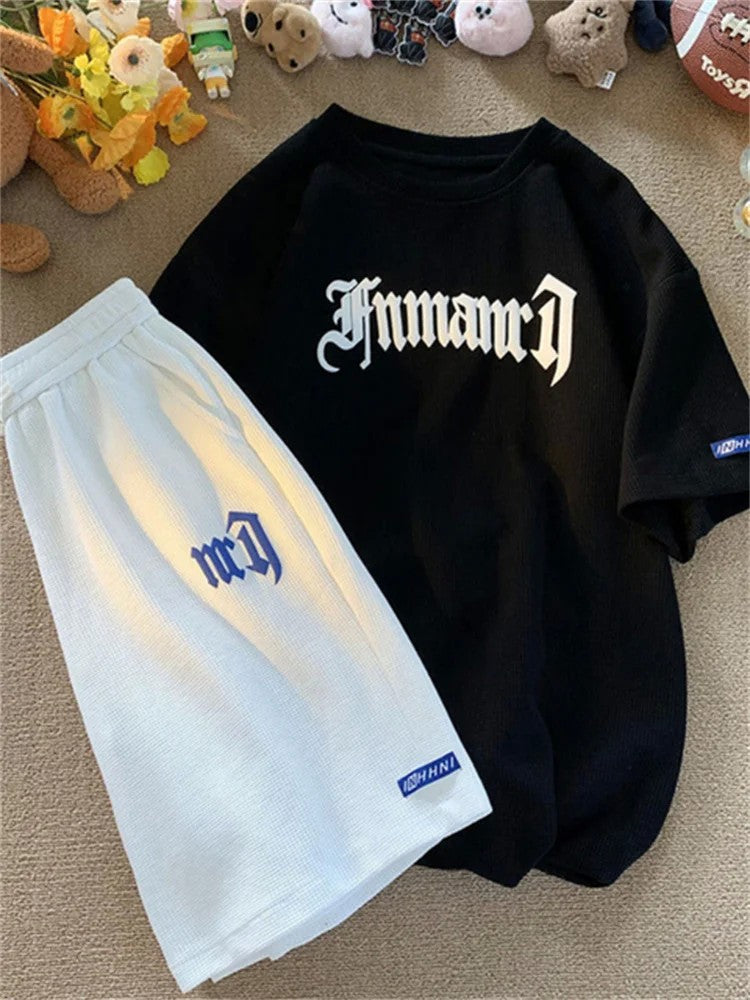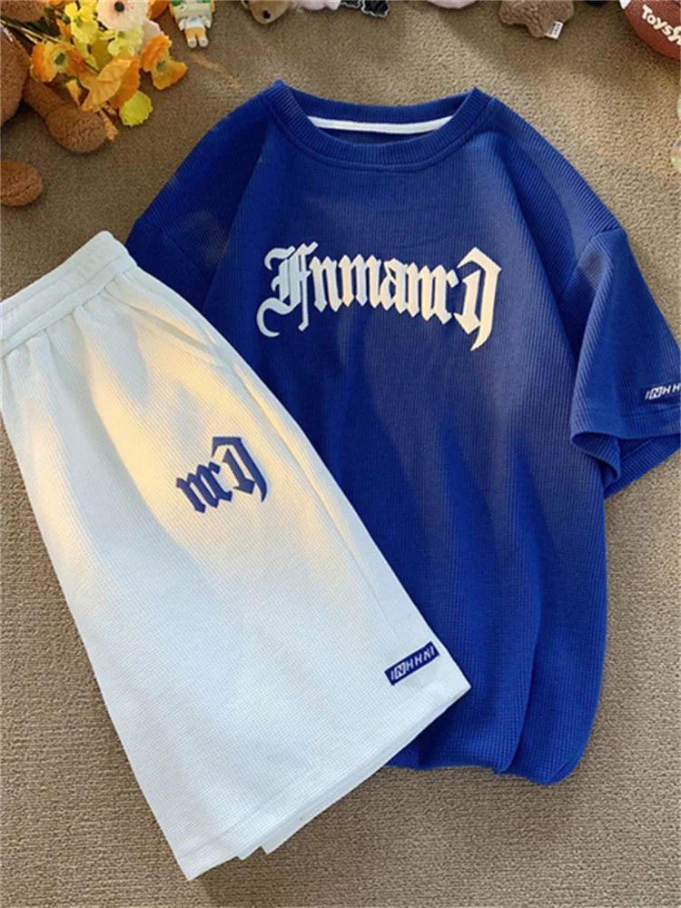 Summer Oversize Casual Fashion tracksuit Loose Jogging Waffle Suit Men Loose Short-sleeve tshirt + Sports Shorts 2pcs Set Outfit