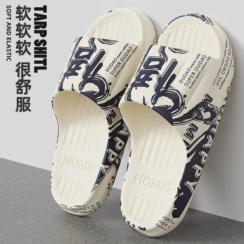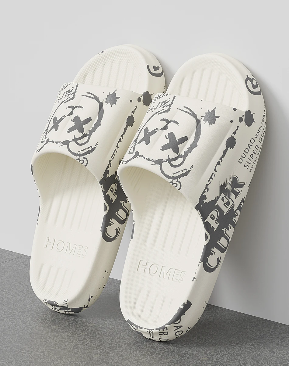Summer Plus Size 48-49 Graffiti Bear Print Men Slippers Home Flip Flops Thick Couple Women Beach Shoes Sandals