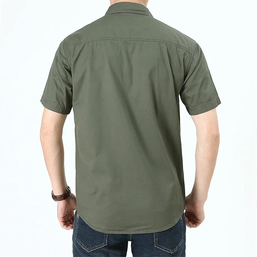 Summer Quick Dry Short Sleeve Mens Army Fan Tactical Shirts Male Solid Thin Lapel Cargo Shirt Tops Outdoor Hiking Military Shirt