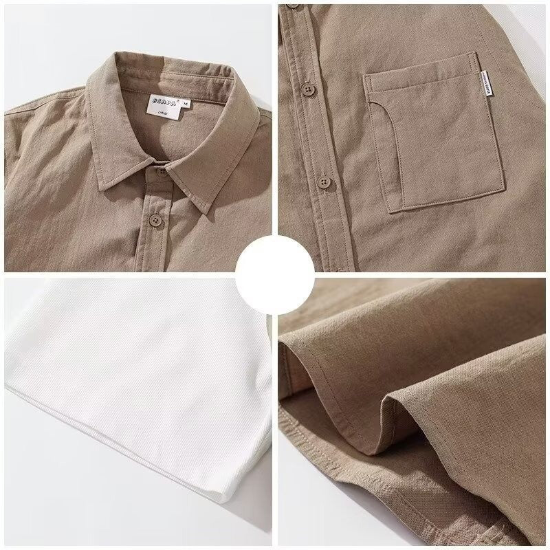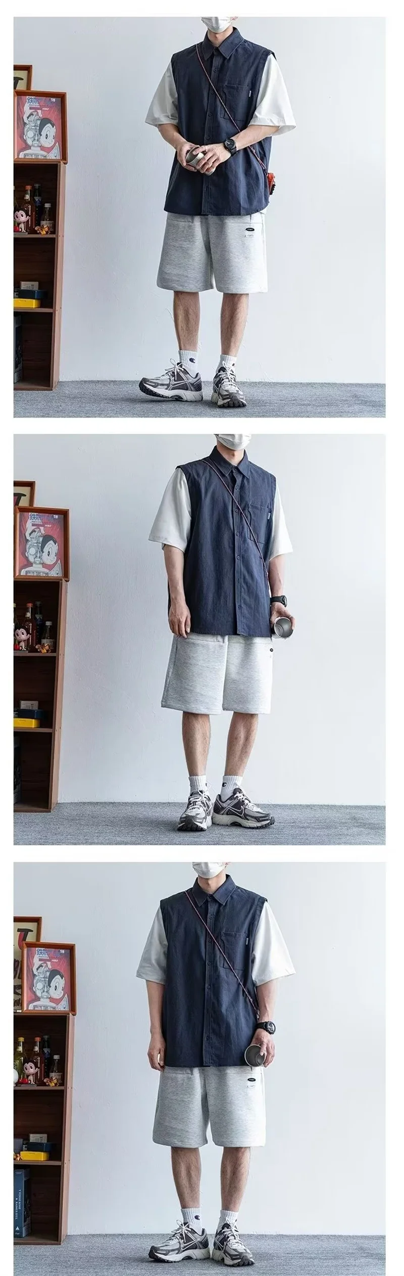 Summer Retro Fake Two-Piece Shirts For Men Casual Patchwork Short Sleeve Cargo Shirt 2025 New Pocket Y2K Streetwear Tee Tops