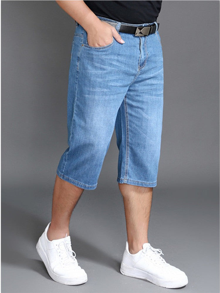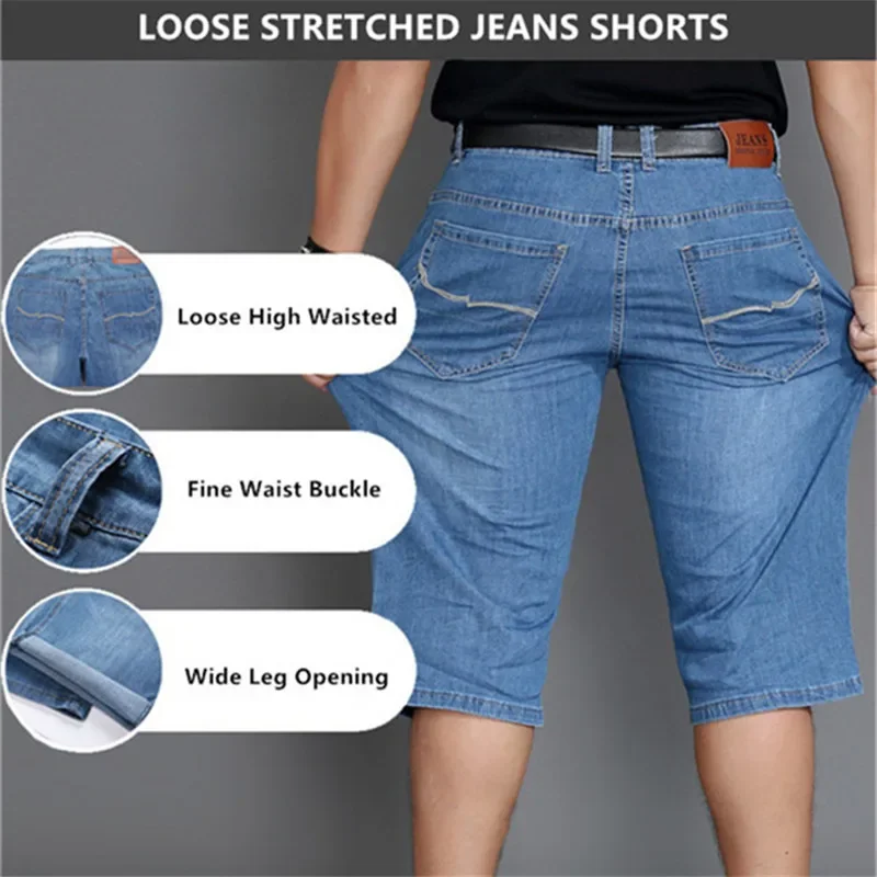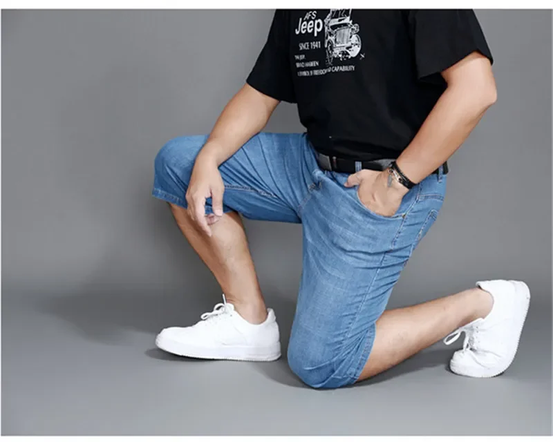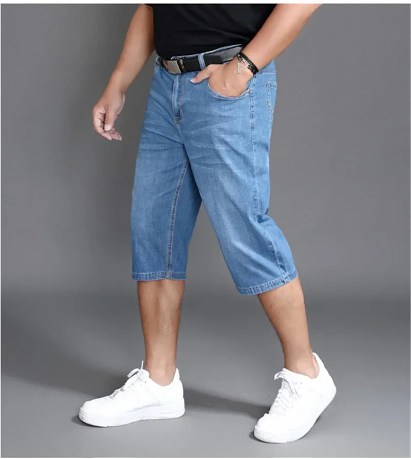 Summer Shorts Calf Length Trousers Plus Size 48 42 Men Denim Elastic Stretched Thin Jean Oversized Classic Straight Streetwear