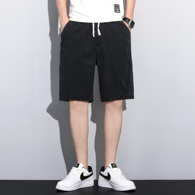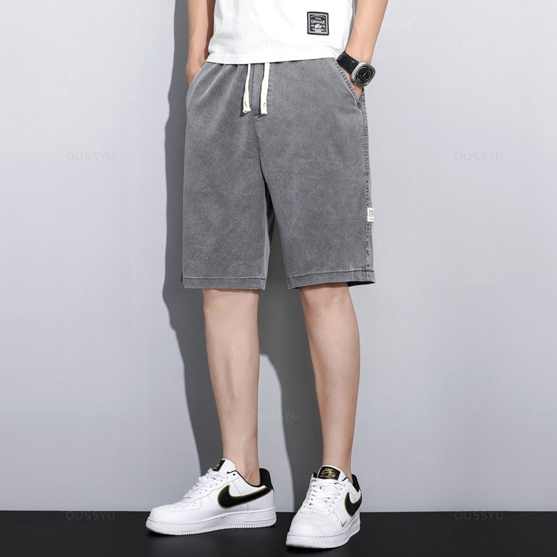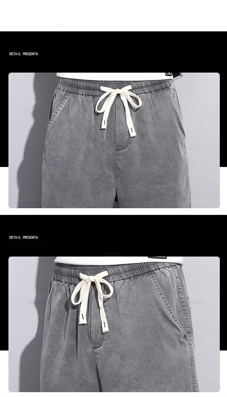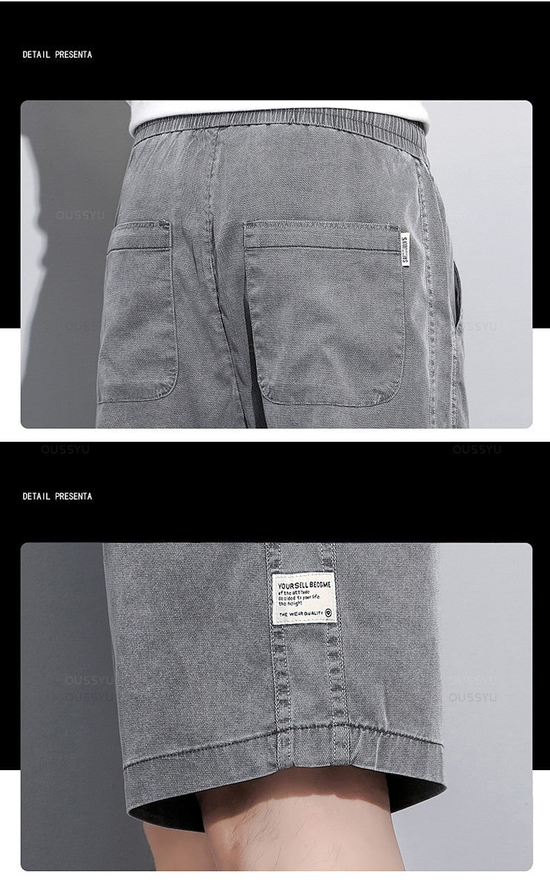 Summer Soft Cosy Lyocell Fabric Men's Denim Shorts Thin Loose Pants Drawstring Elastic Waist Korea Casual Short Plus Size M-5XL