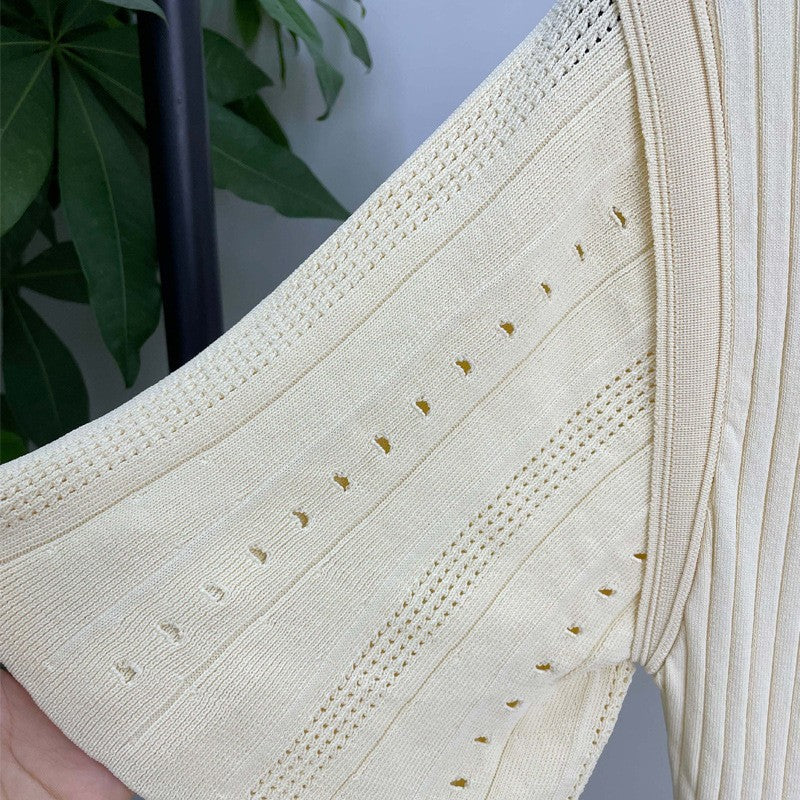 Summer-style fashionable openwork French slimming A-line short-sleeved knitted d