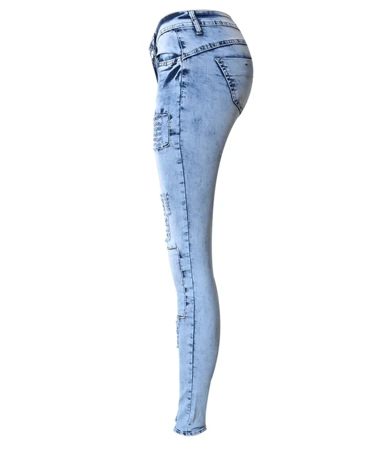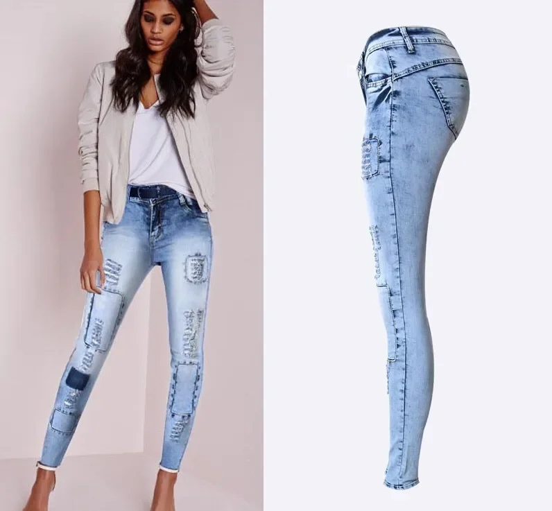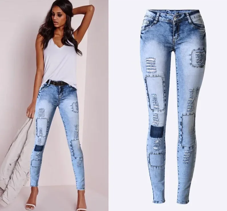 Summer Style Low Waist Sky Blue Patchwork Skinny Tights Women Pencil Jeans High Stretch Sexy Push Up Denim Women Fashion Jeans