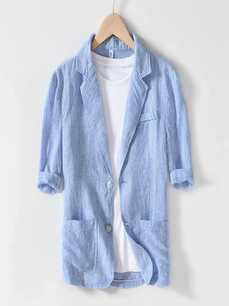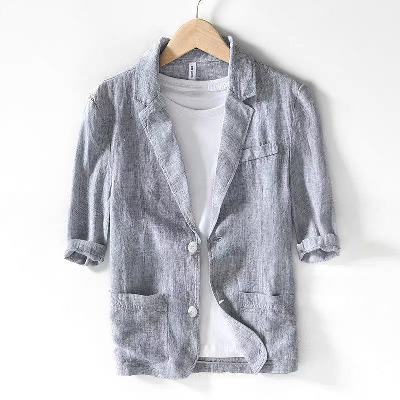 Summer thin pure linen five quarter sleeve casual suit men's top jacket Japanese style artistic casual suit MH107