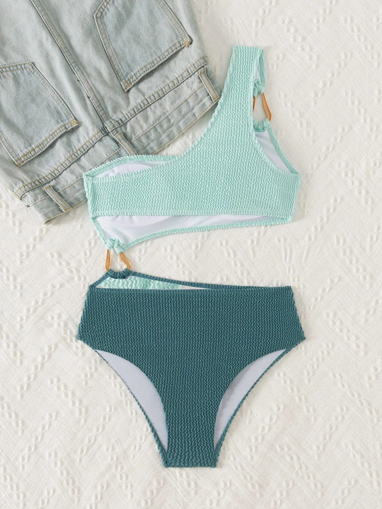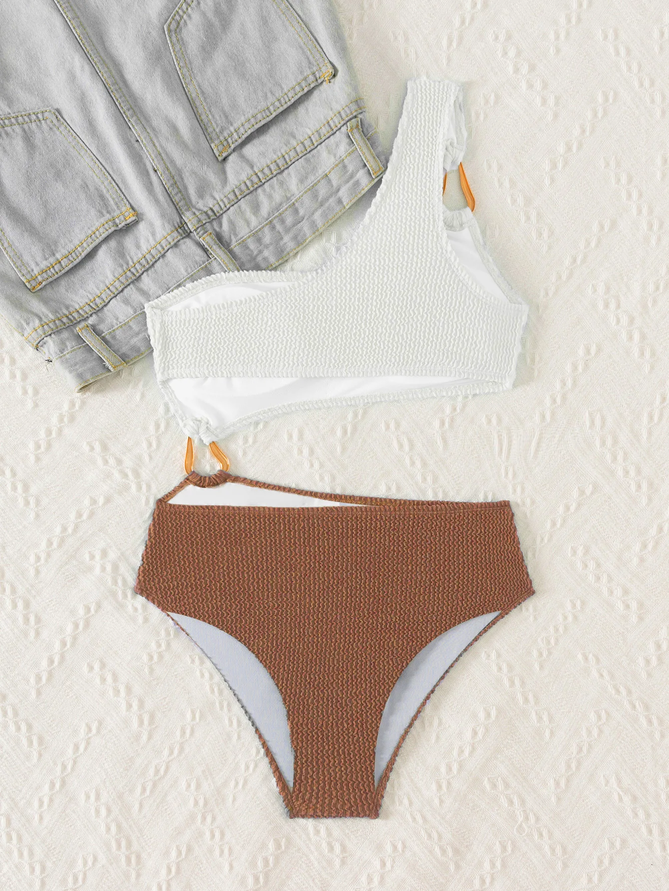 Summer Women Color Block One Piece Swimsuits One Shoulder Cutout Bathing Suits Sexy Bikinis Sets Backless Beachwear