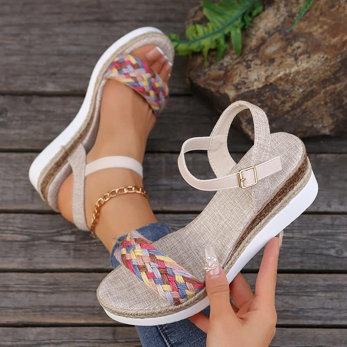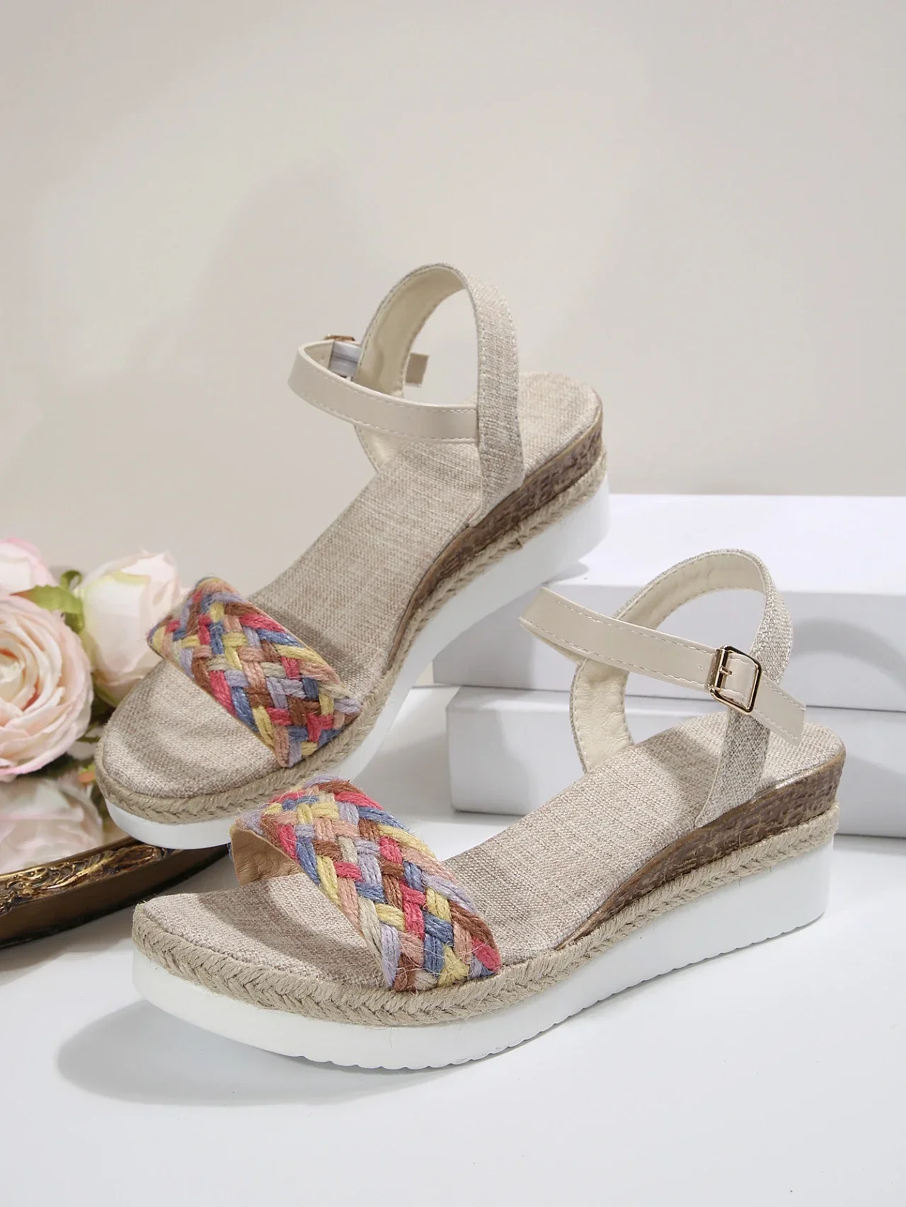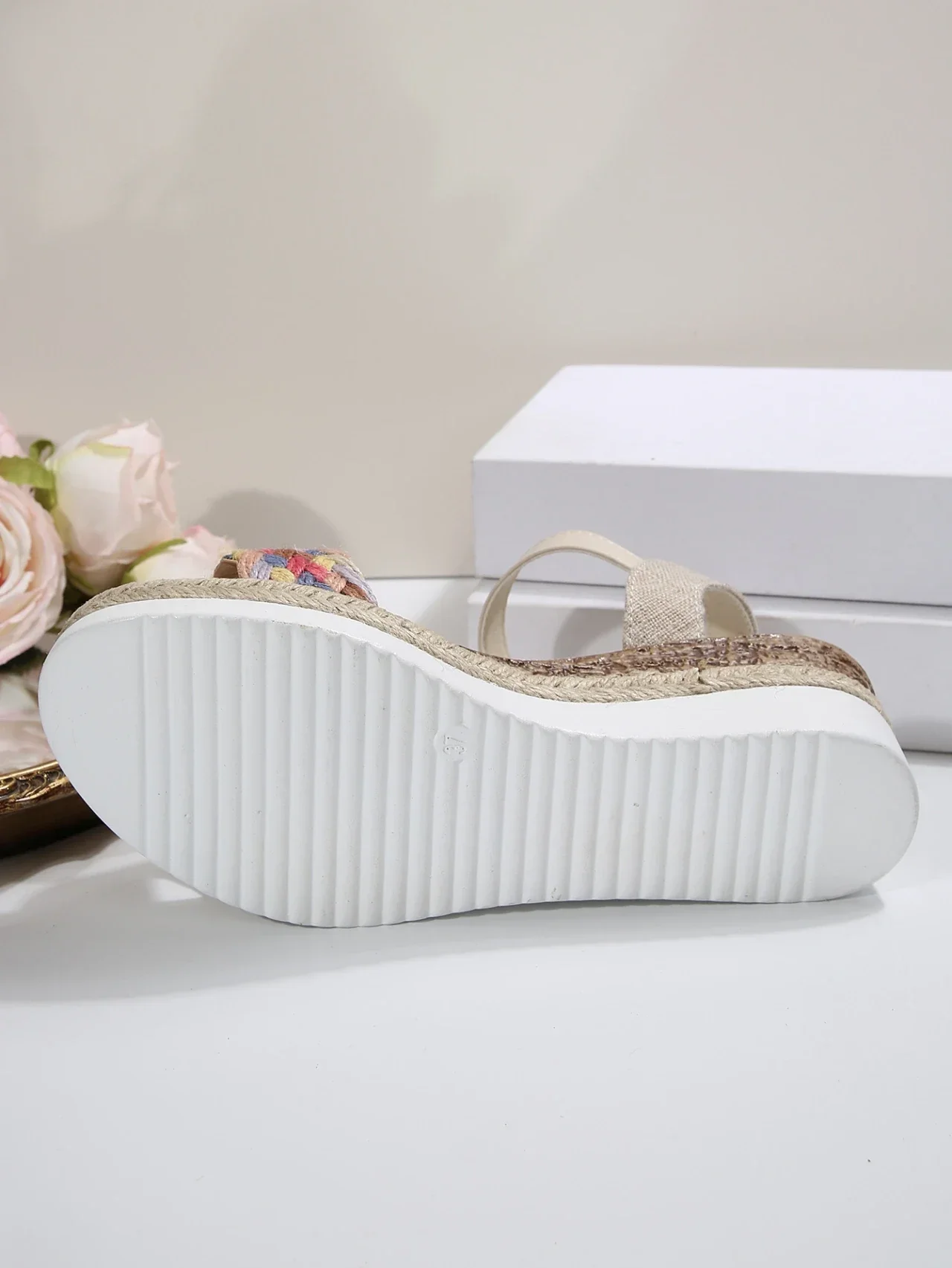 Summer Women's High Heel Sandals Heel Large Size Colorful Braided Rope Sandalias De Mujer Outdoor Versatile Zapatillas De Mujer