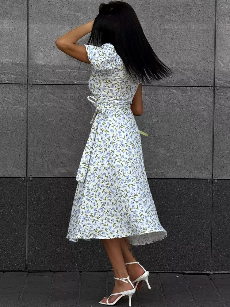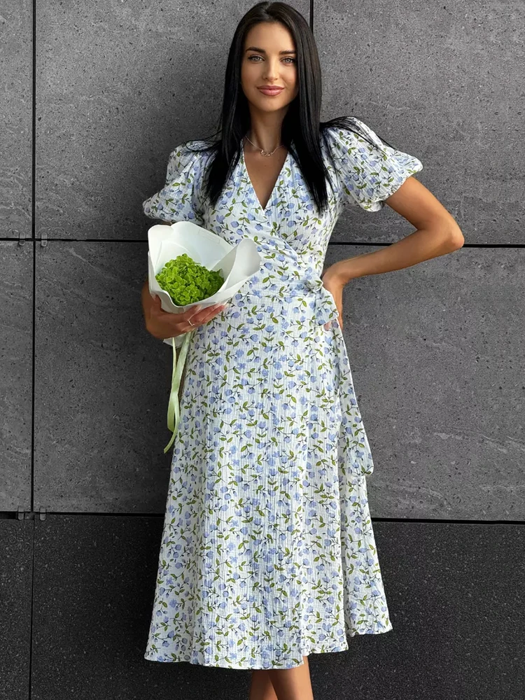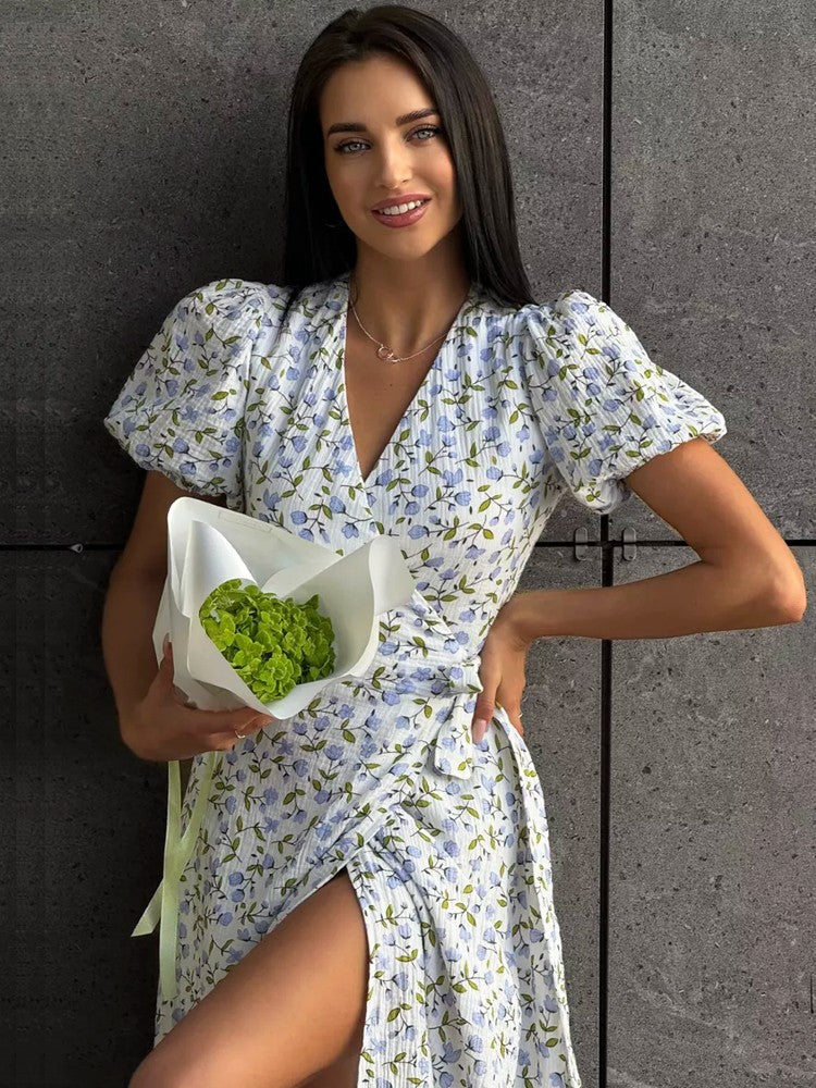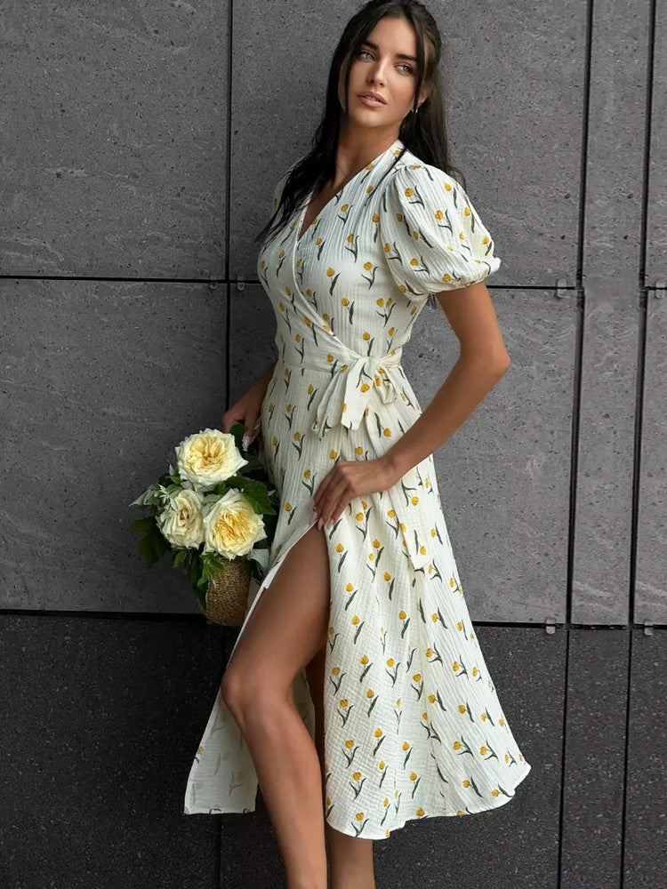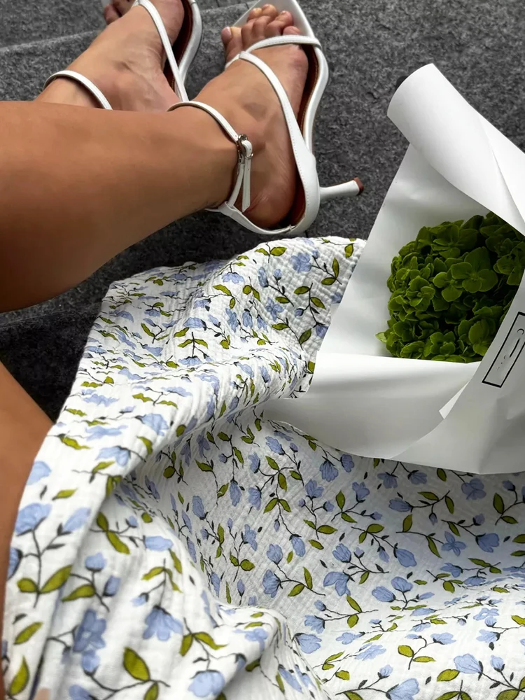 Summer Women's Light Long Dress 100% Cotton A-line Midi Dresses Muslin with Side