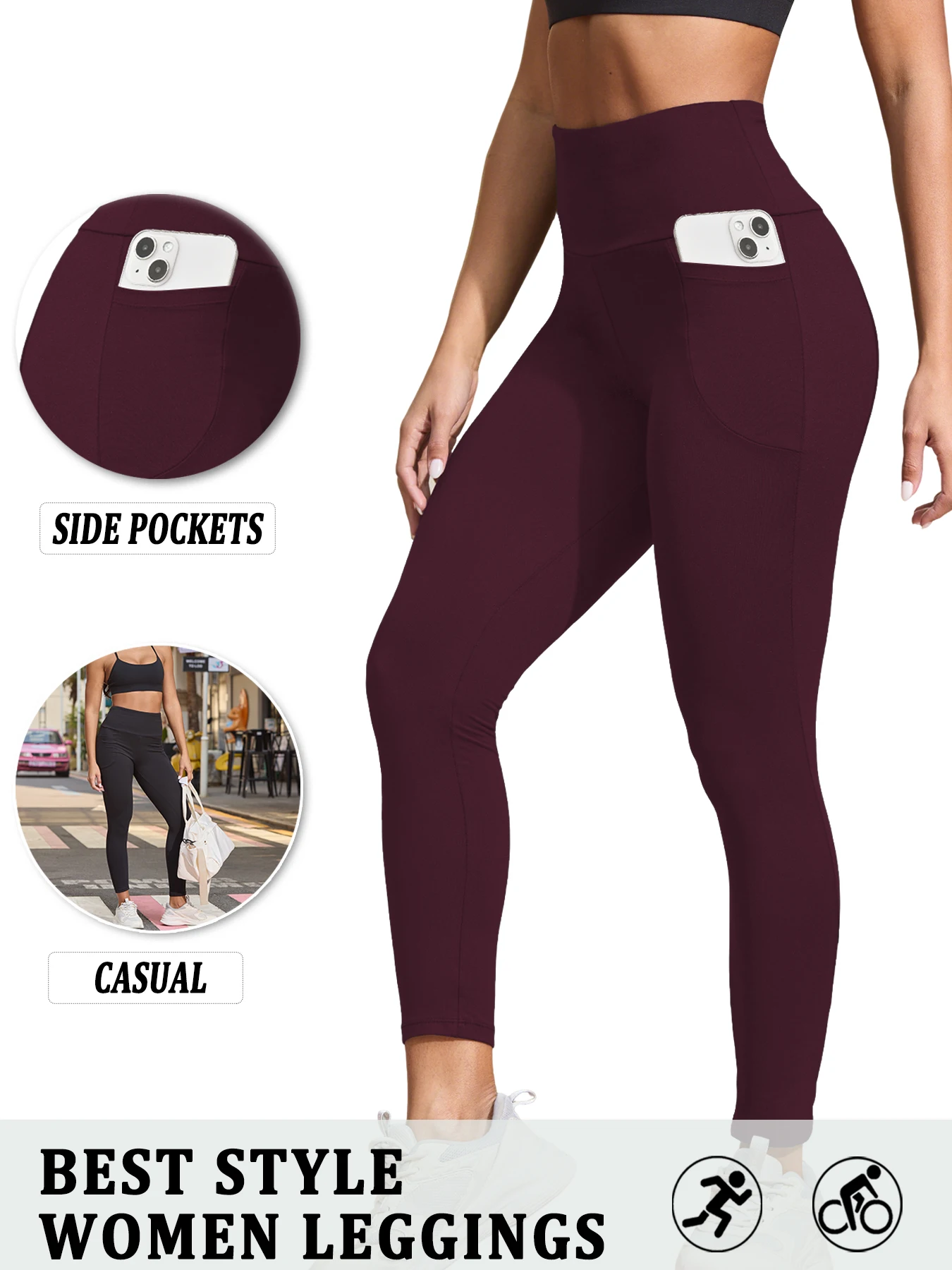 Super Soft Sports Leggings With Pockets For Women High Waisted Workout Yoga Running Push Up Gym Fitness Tight Pants Women's
