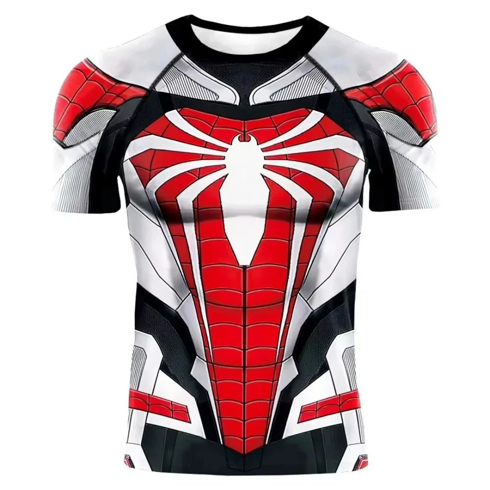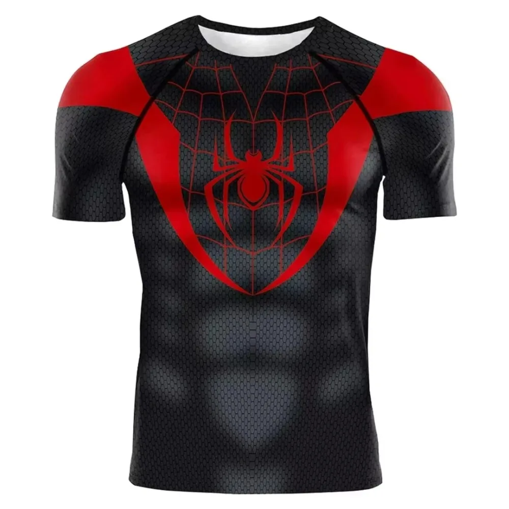 Superhero Tops Fitness Activewear Breathable Tees 2025 Summer New Men Compression T Shirt Spider Role Play Short Sleeve T Shirt