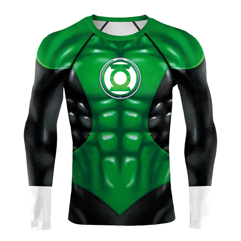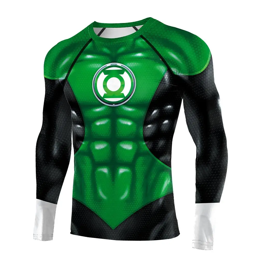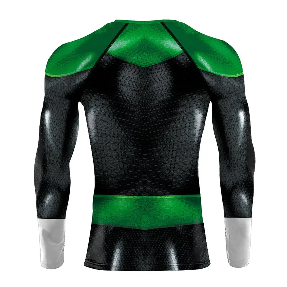 Superheroes Cosplay Costume Men Green Compression Shirts Lantern Printing Long Sleeves Tops Gym Sports Shirt Male Clothes