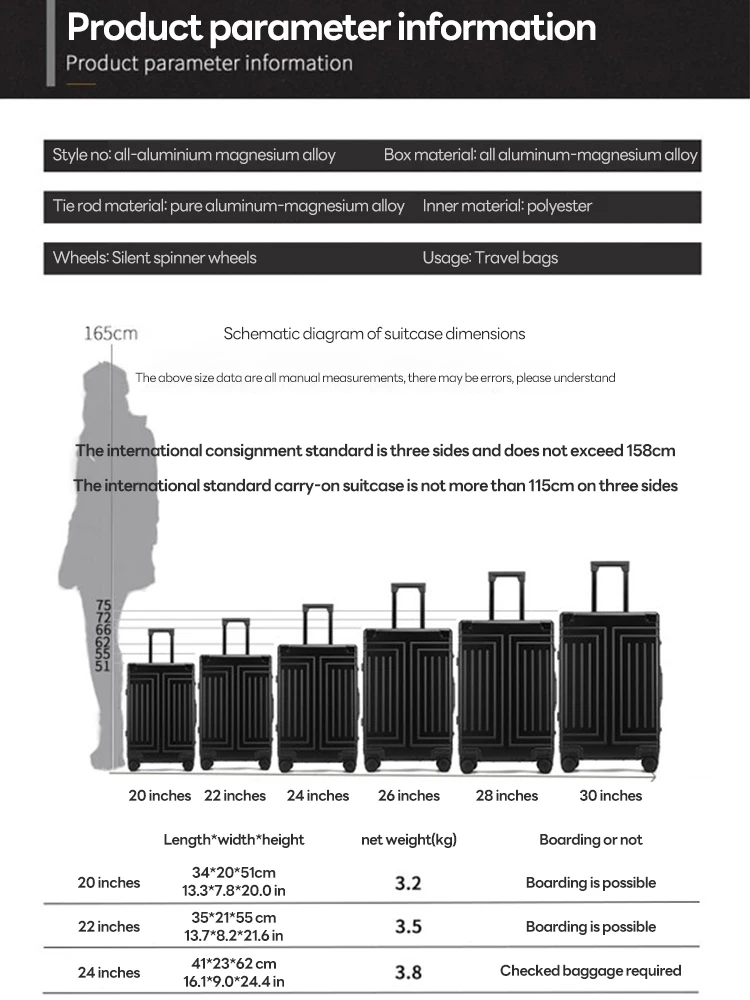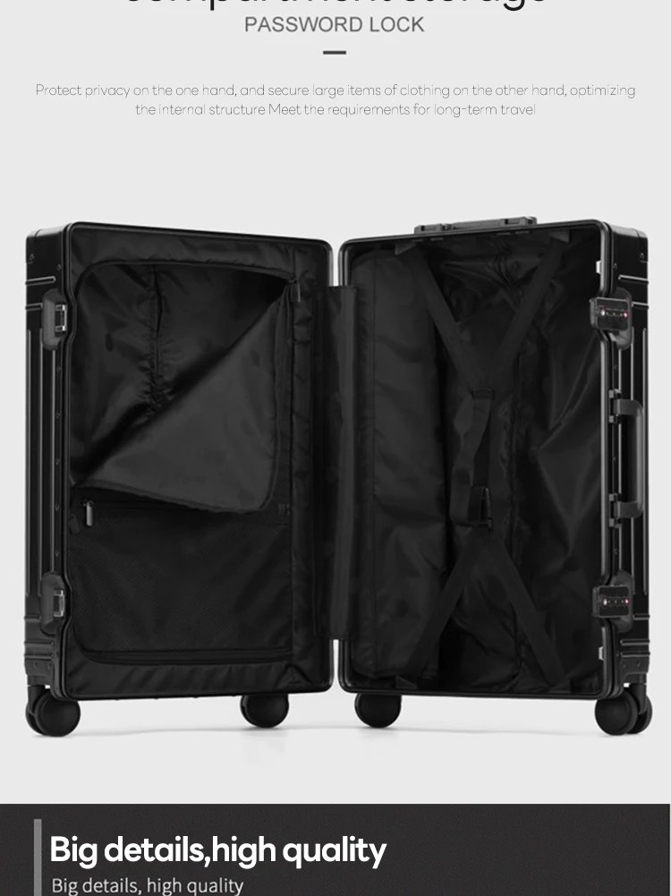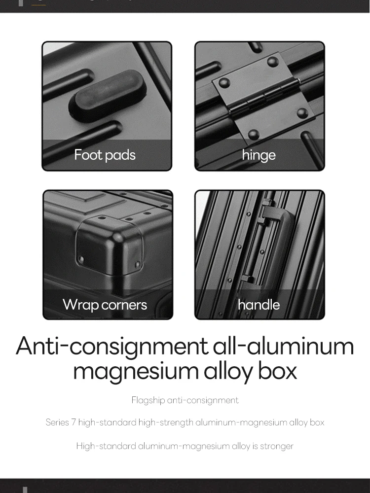 SUSHIMU 100% Aluminum-magnesium alloy Travel Suitcase Rolling Luggage 20/24/28 inch Trolley Luggage Carry-On Cabin Suitcase