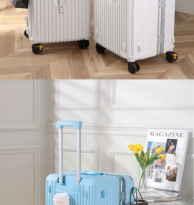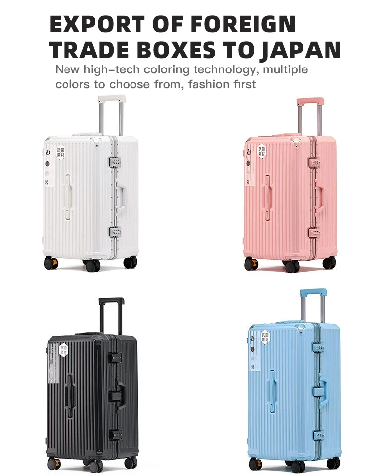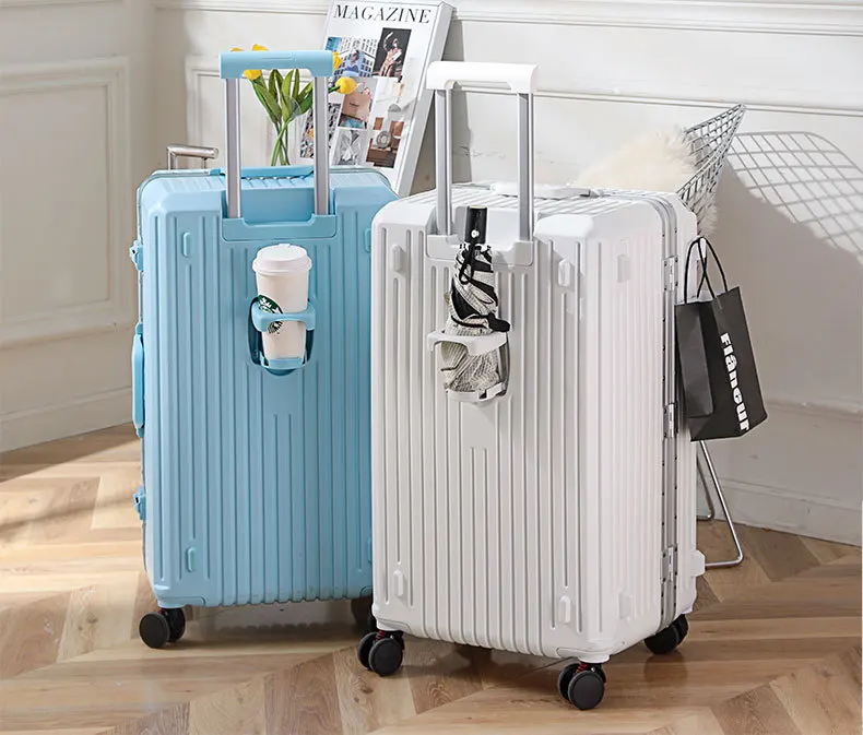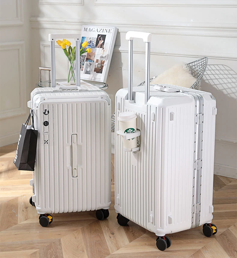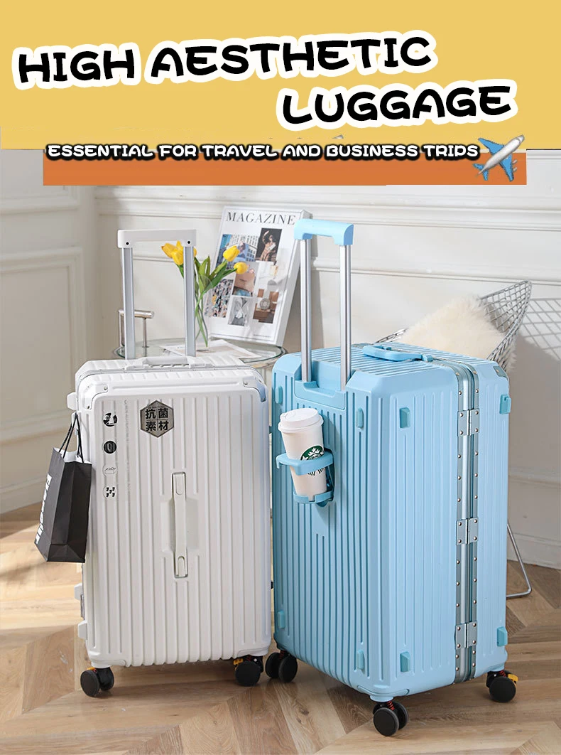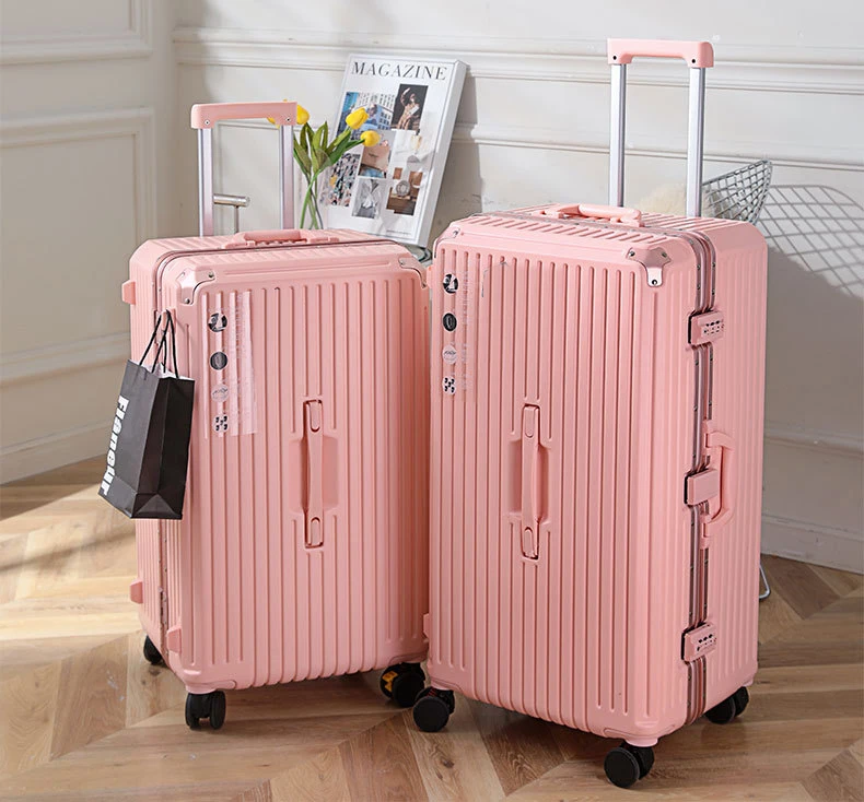 sushimu Suitcase Wide Handle Travel Suitcase Men 20 24 26 Carry-On Luggage Women PC Aluminum Frame Trolley Case