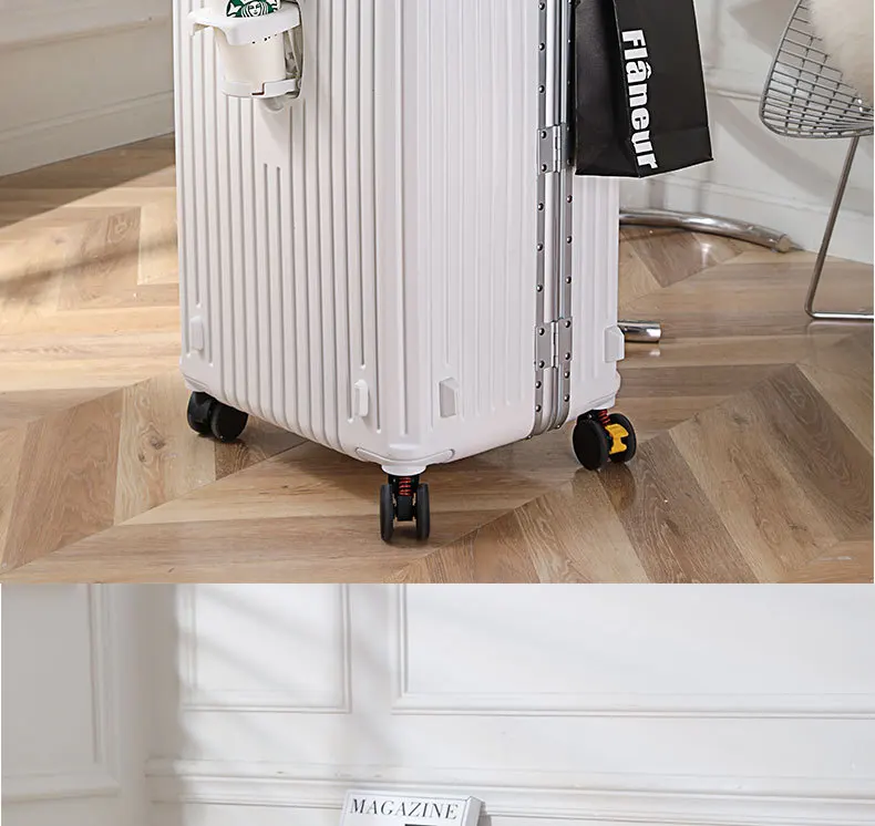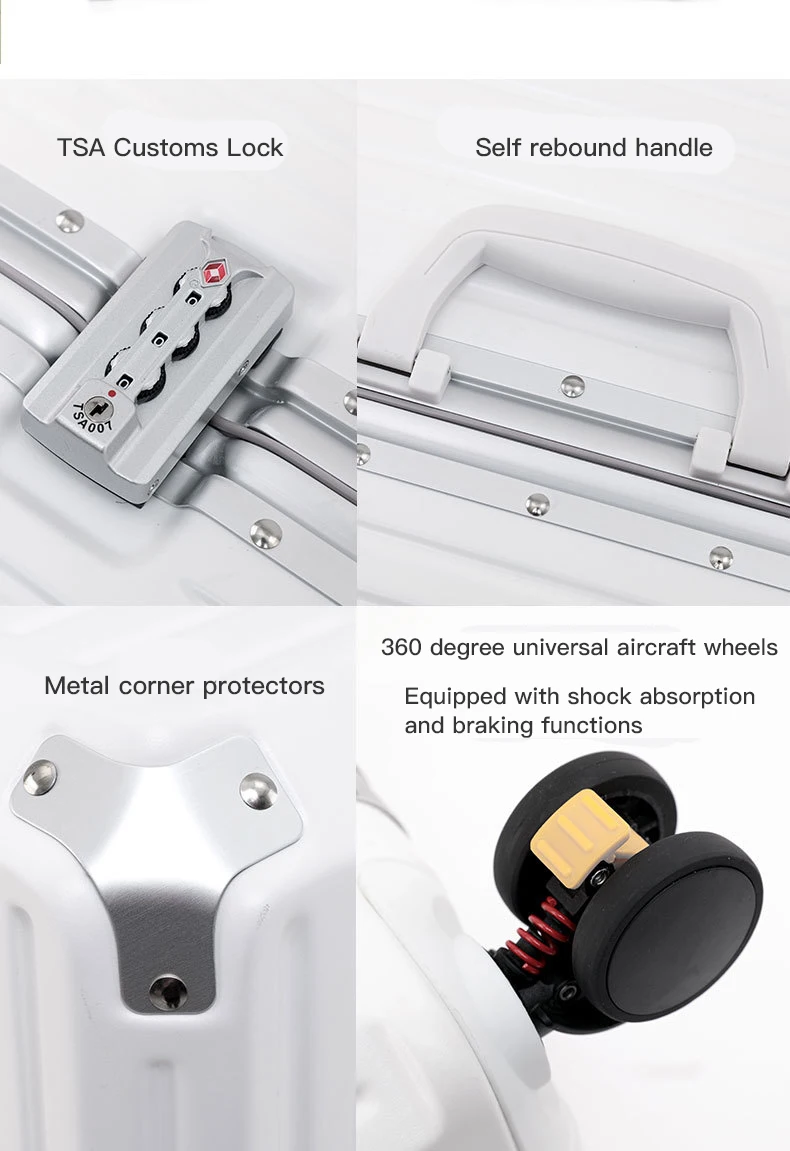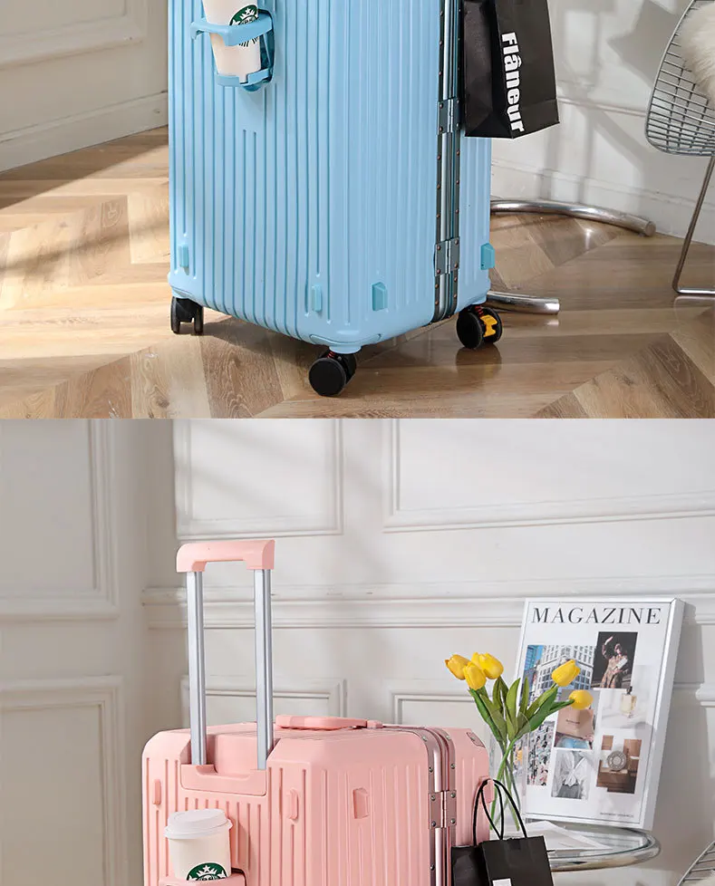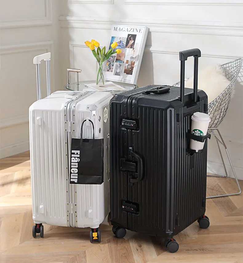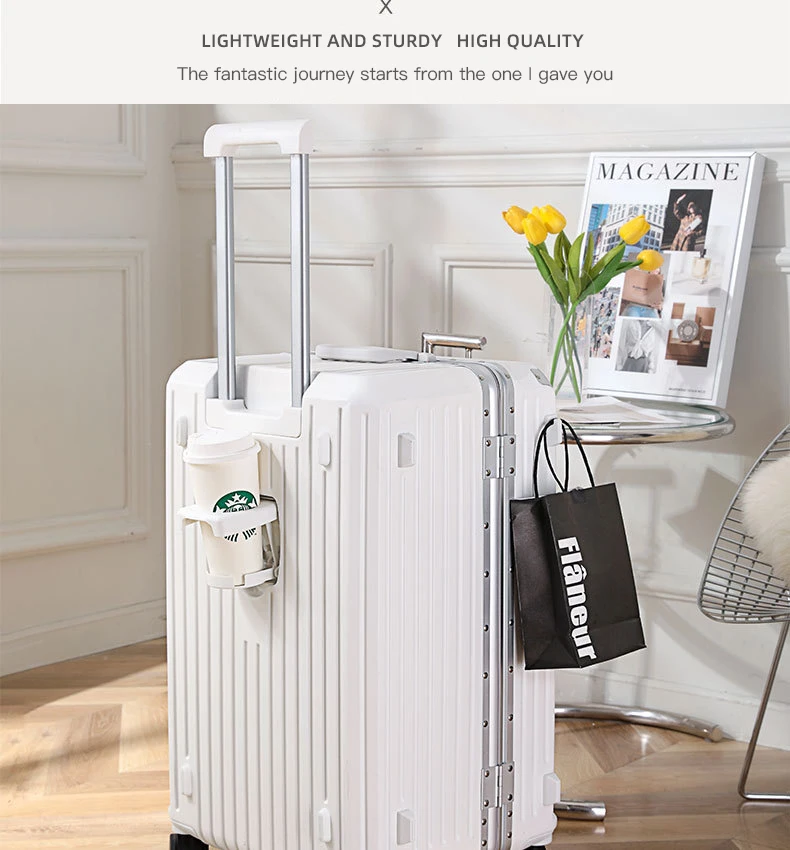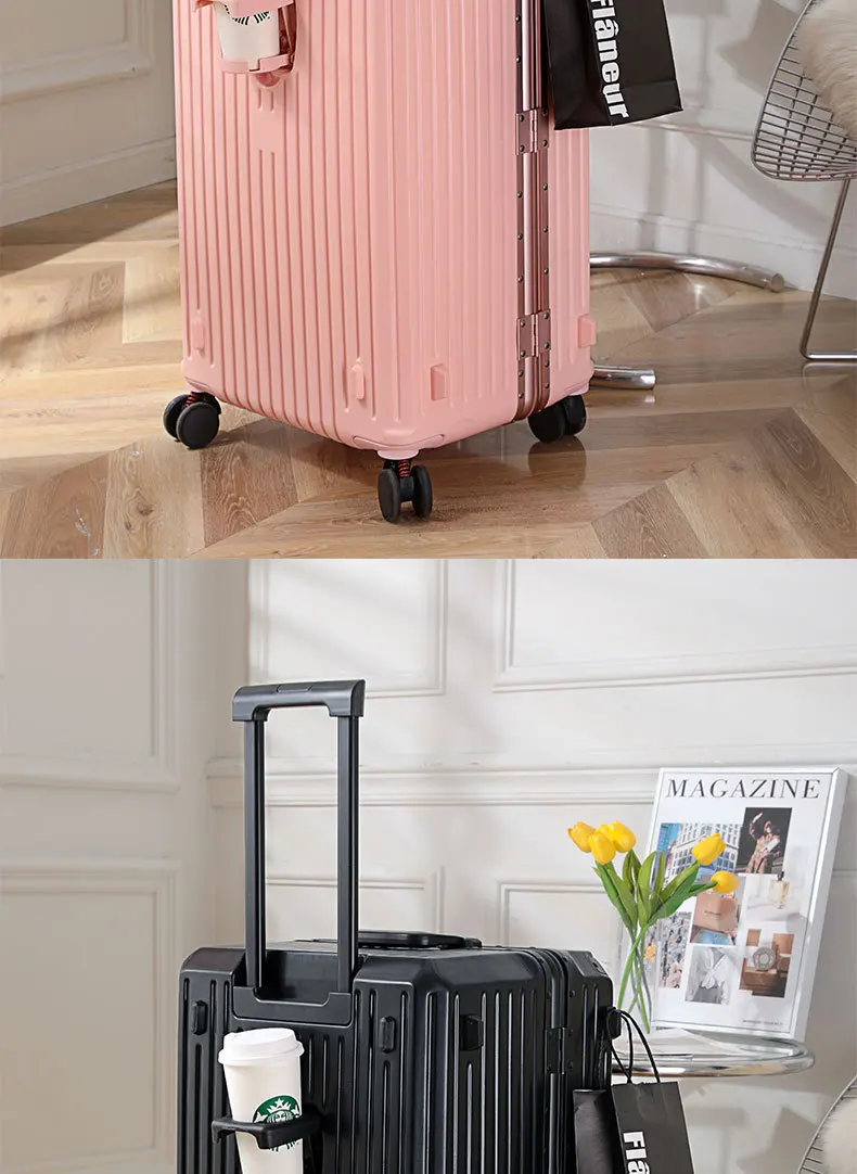 sushimu Suitcase Wide Handle Travel Suitcase Men 20 24 26 Carry-On Luggage Women PC Aluminum Frame Trolley Case