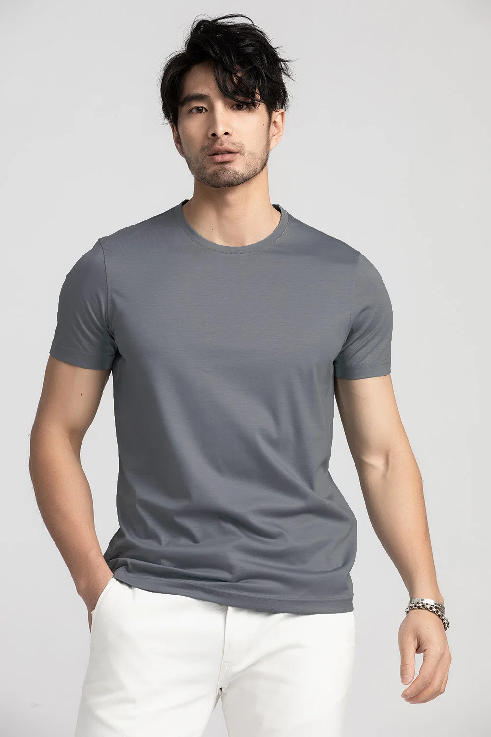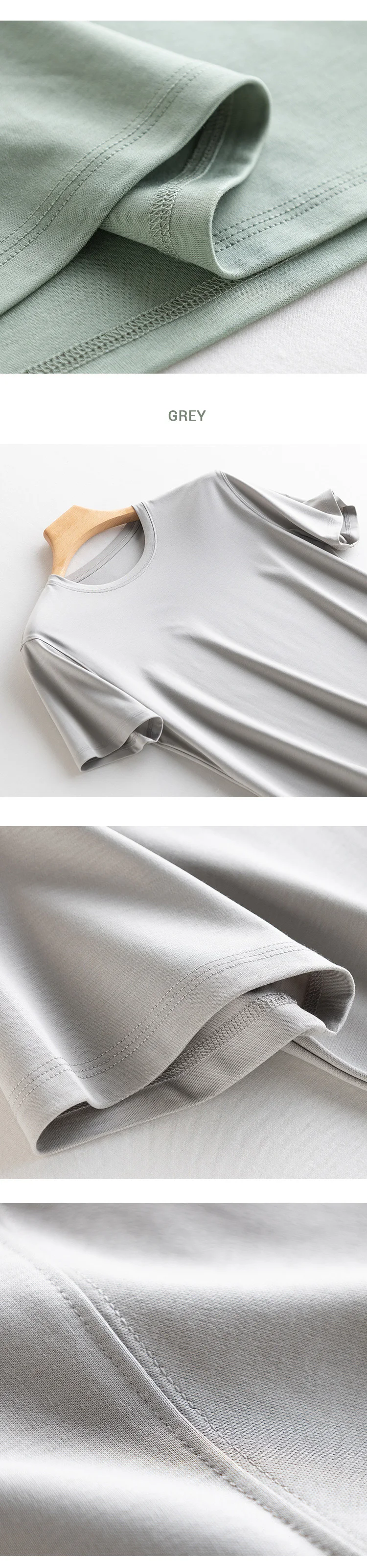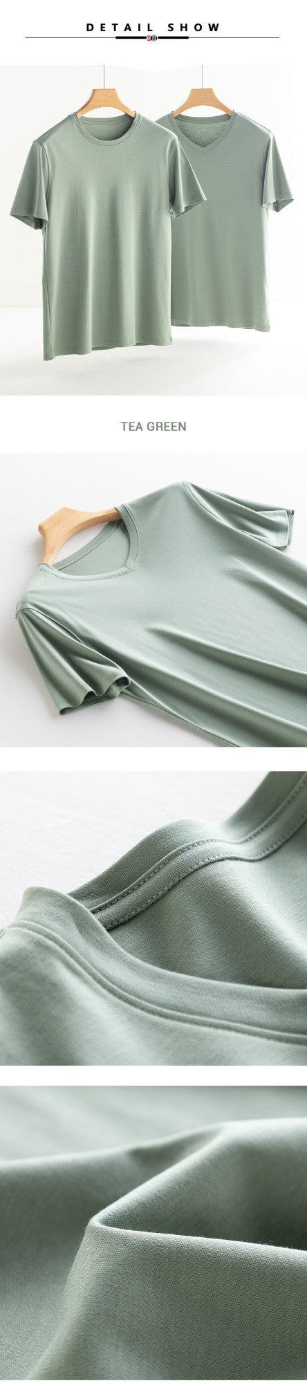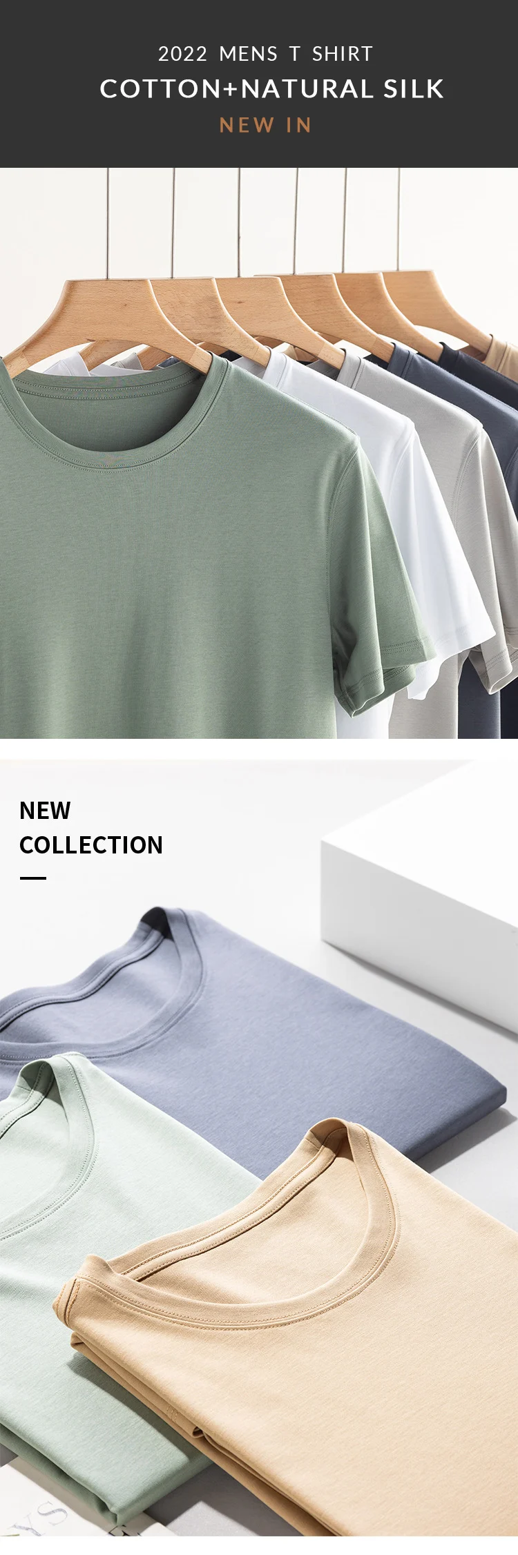 SuyaDream Mens Solid Tee Cotton Silk Blend Plain O neck Short Sleeved Cozy T Shirts 2025 Summer Simple Chic Top White Black