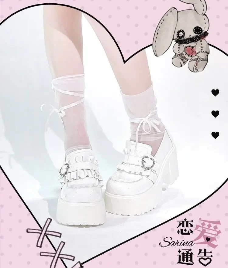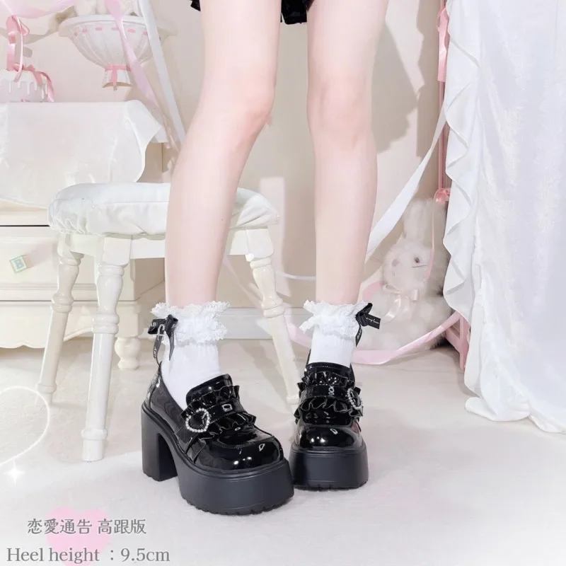 Sweet Heart-Shaped Buckle Lolita High Heels Pump Shoes for Women Y2k PU Leather Waterproof Platform Mary Janes Shoes