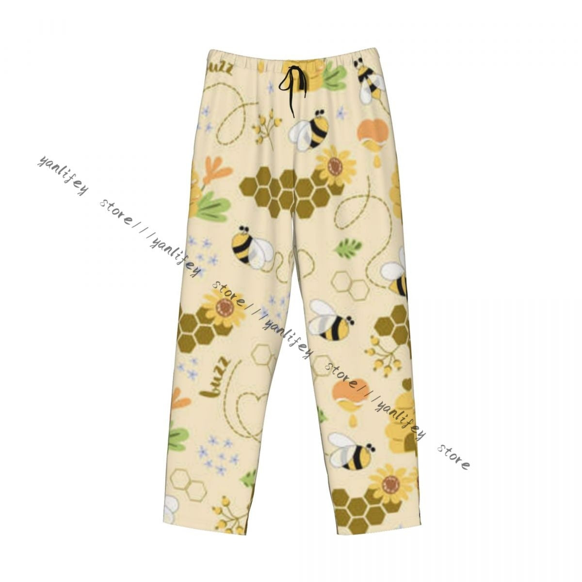 Sweet Honey Cute Bees Hive Flower Mens Pajamas Pyjamas Pants Lounge Pants Sleep Bottoms