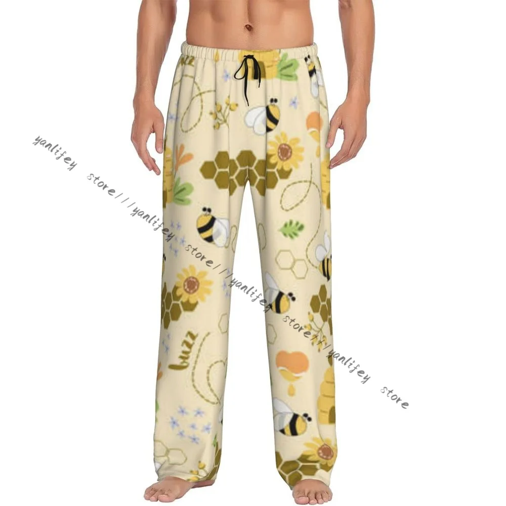 Sweet Honey Cute Bees Hive Flower Mens Pajamas Pyjamas Pants Lounge Pants Sleep Bottoms