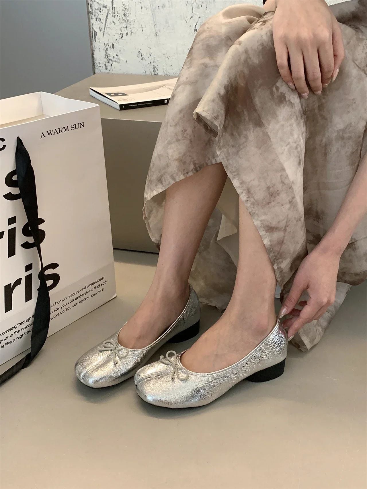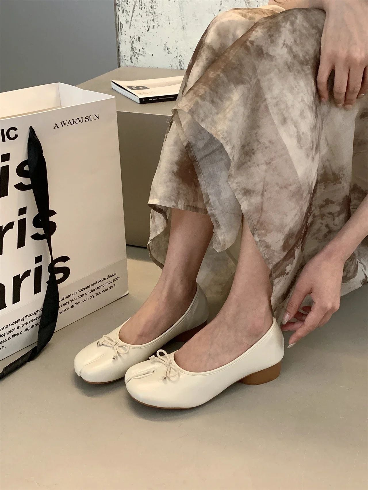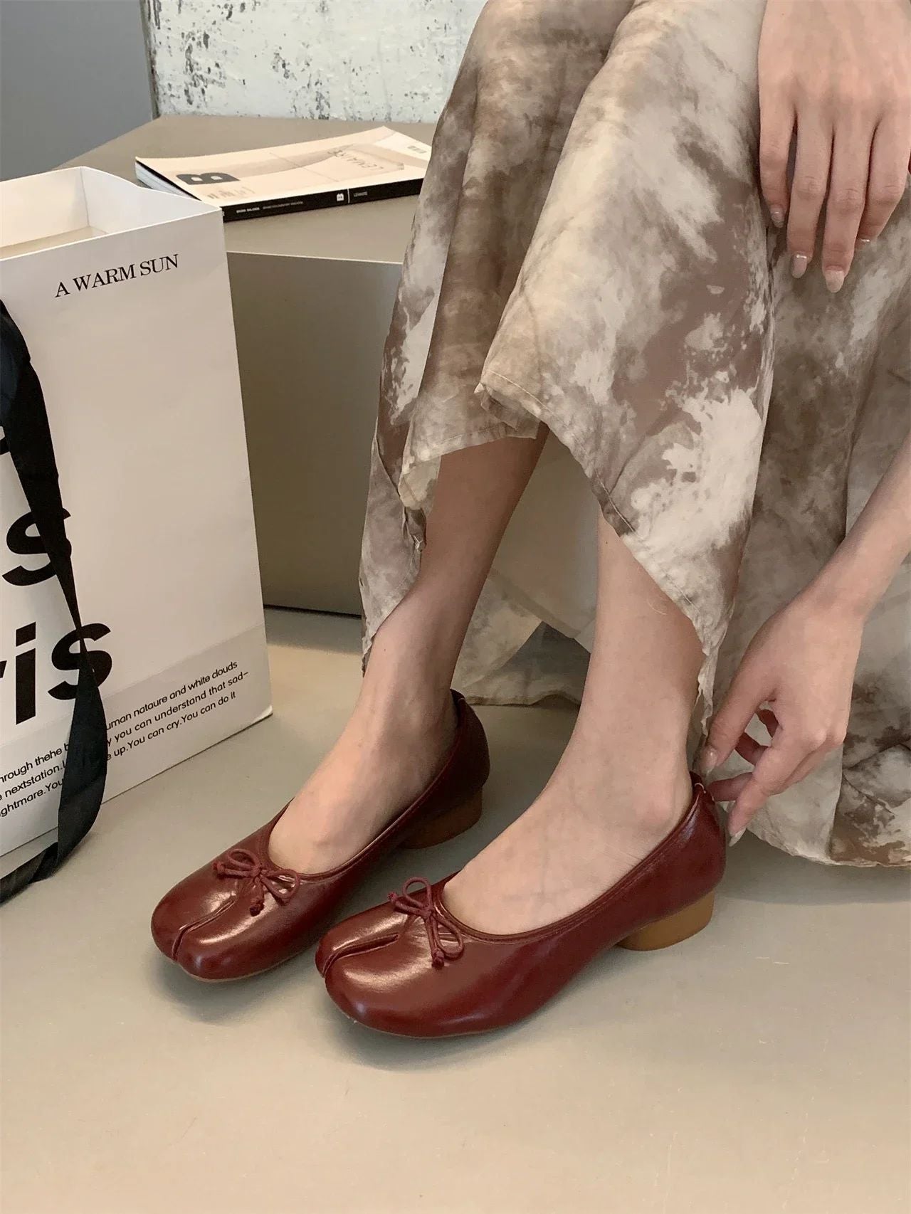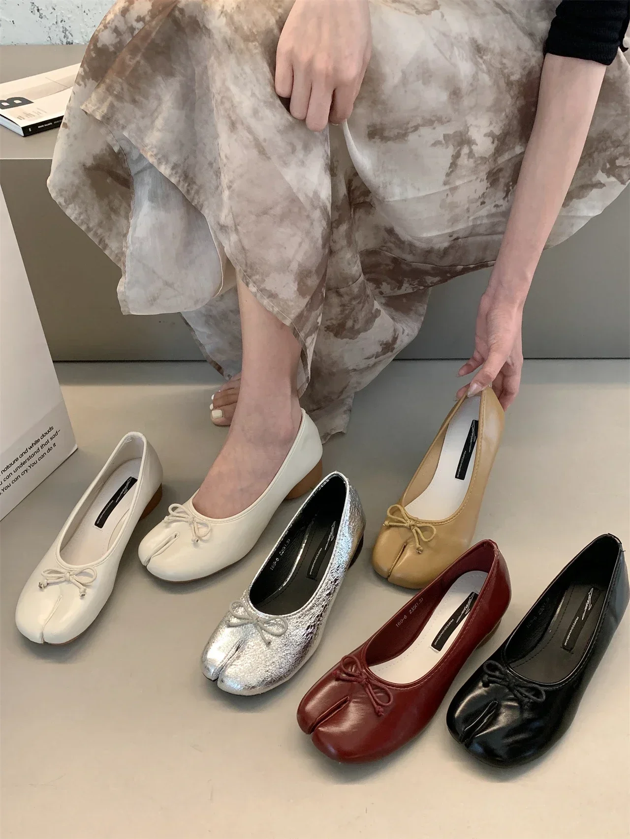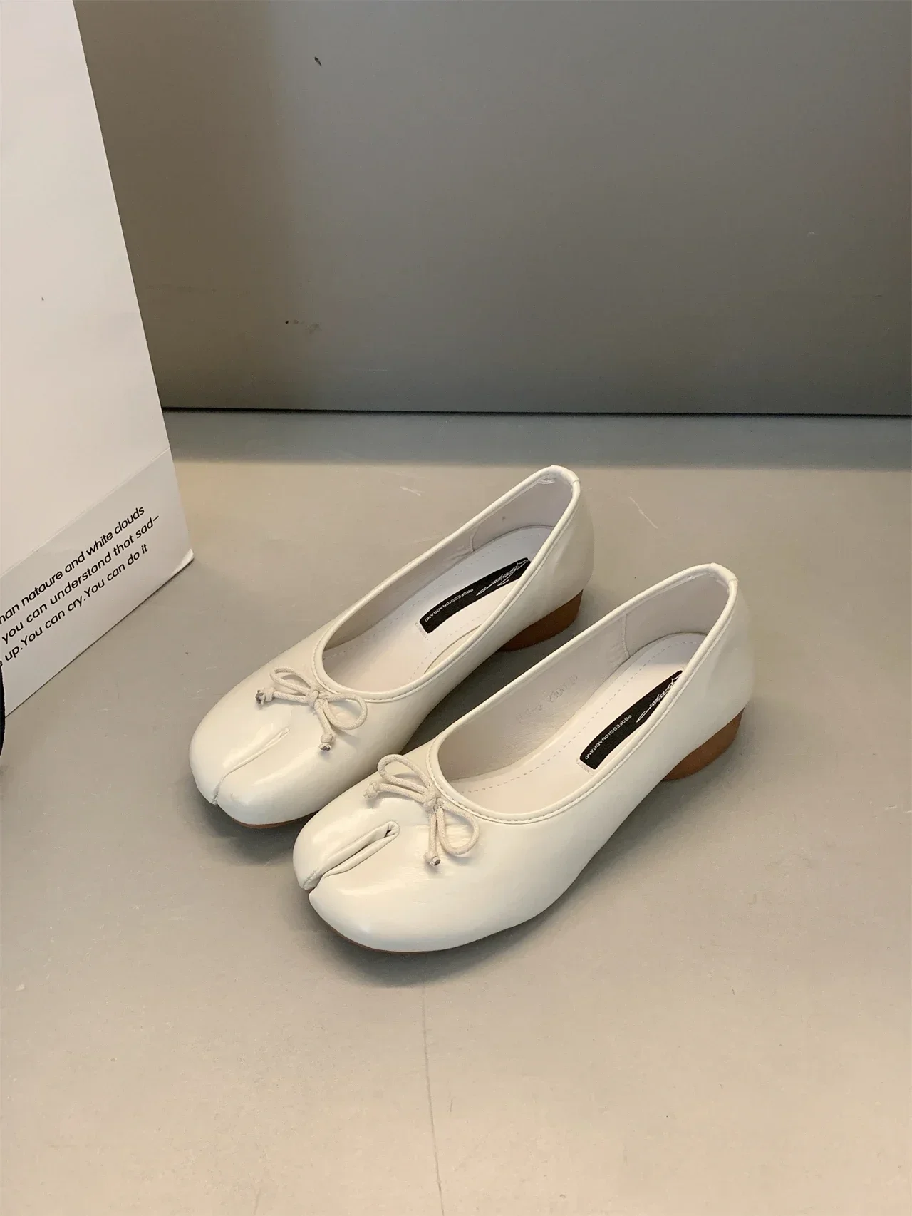 Tabi Shoes Ballet Falts Leather Ballerina Shoes For Women Split Toe Flats Tabi Shoes Slip On Soft Bottom Moccasins with Bowknot