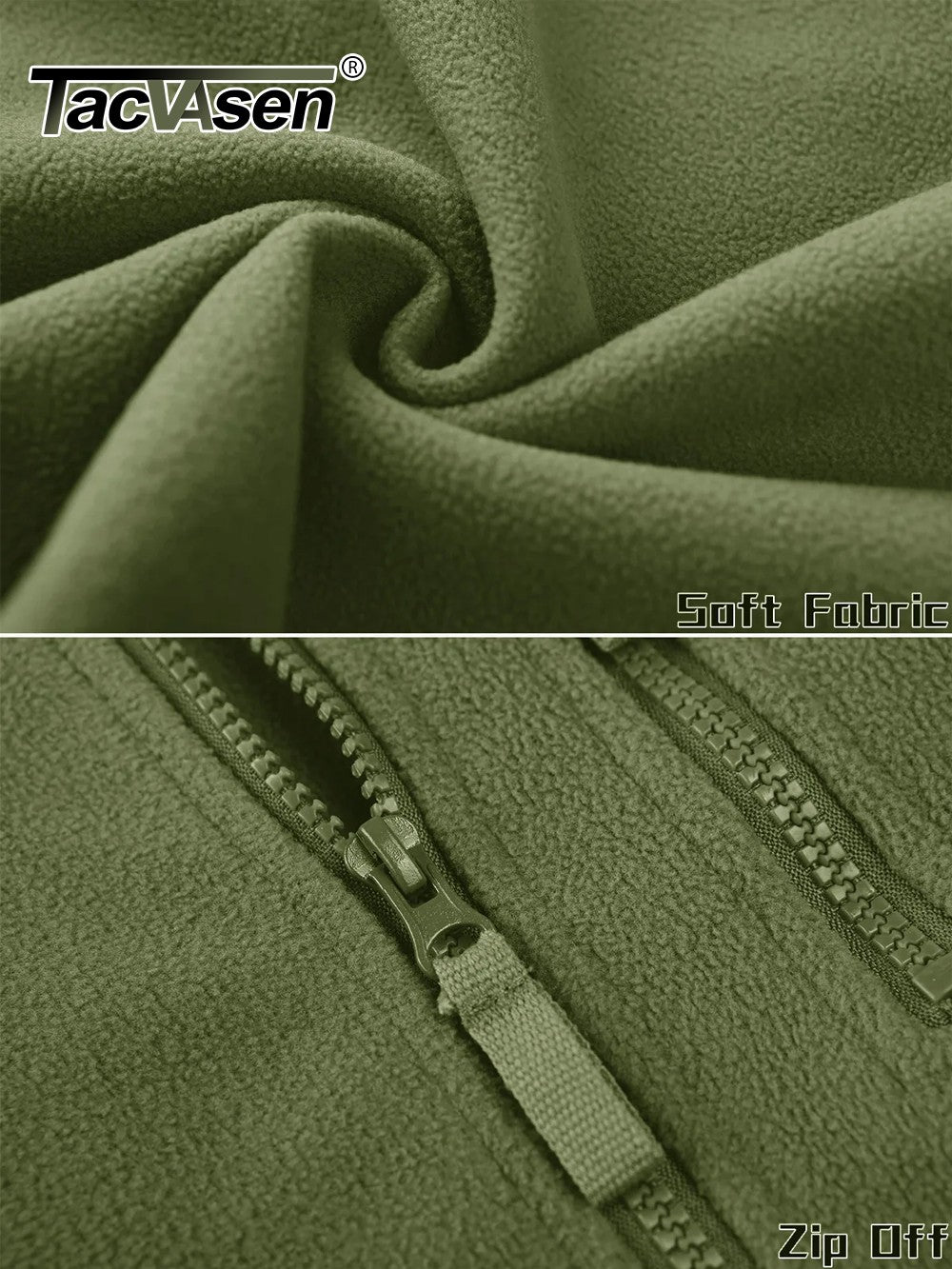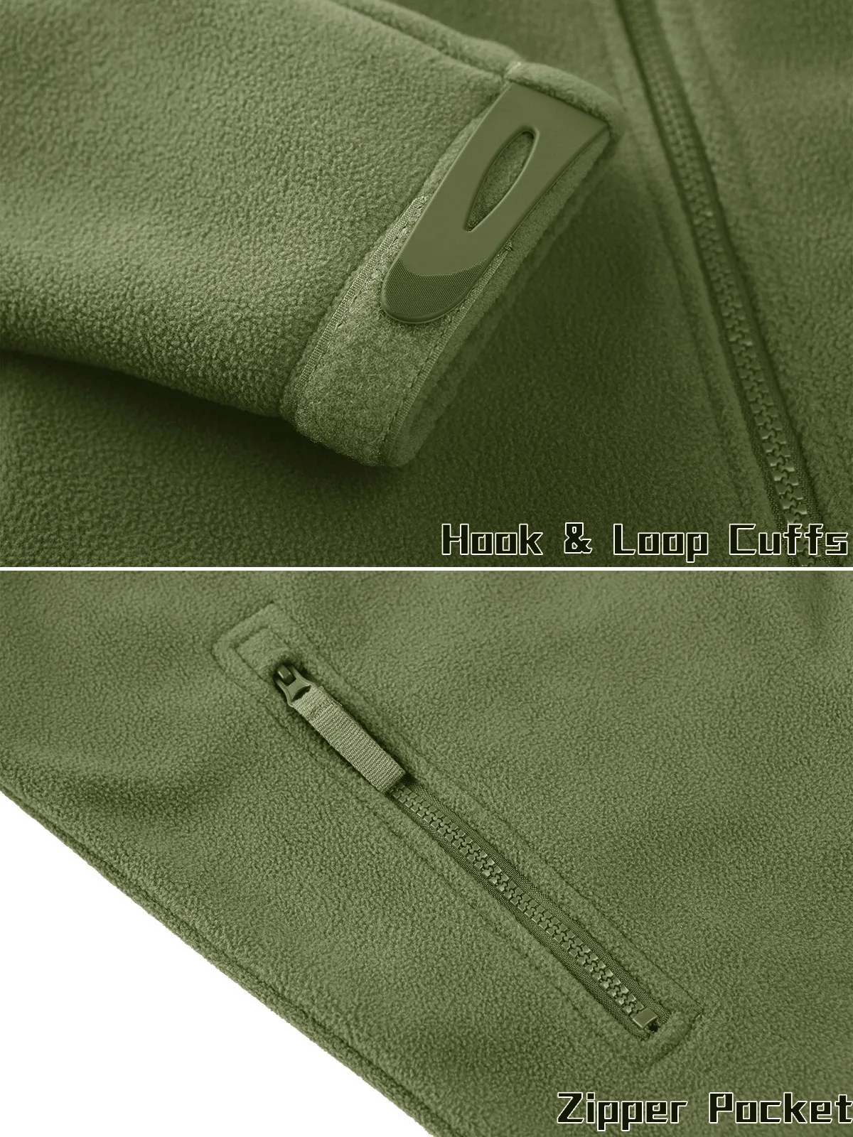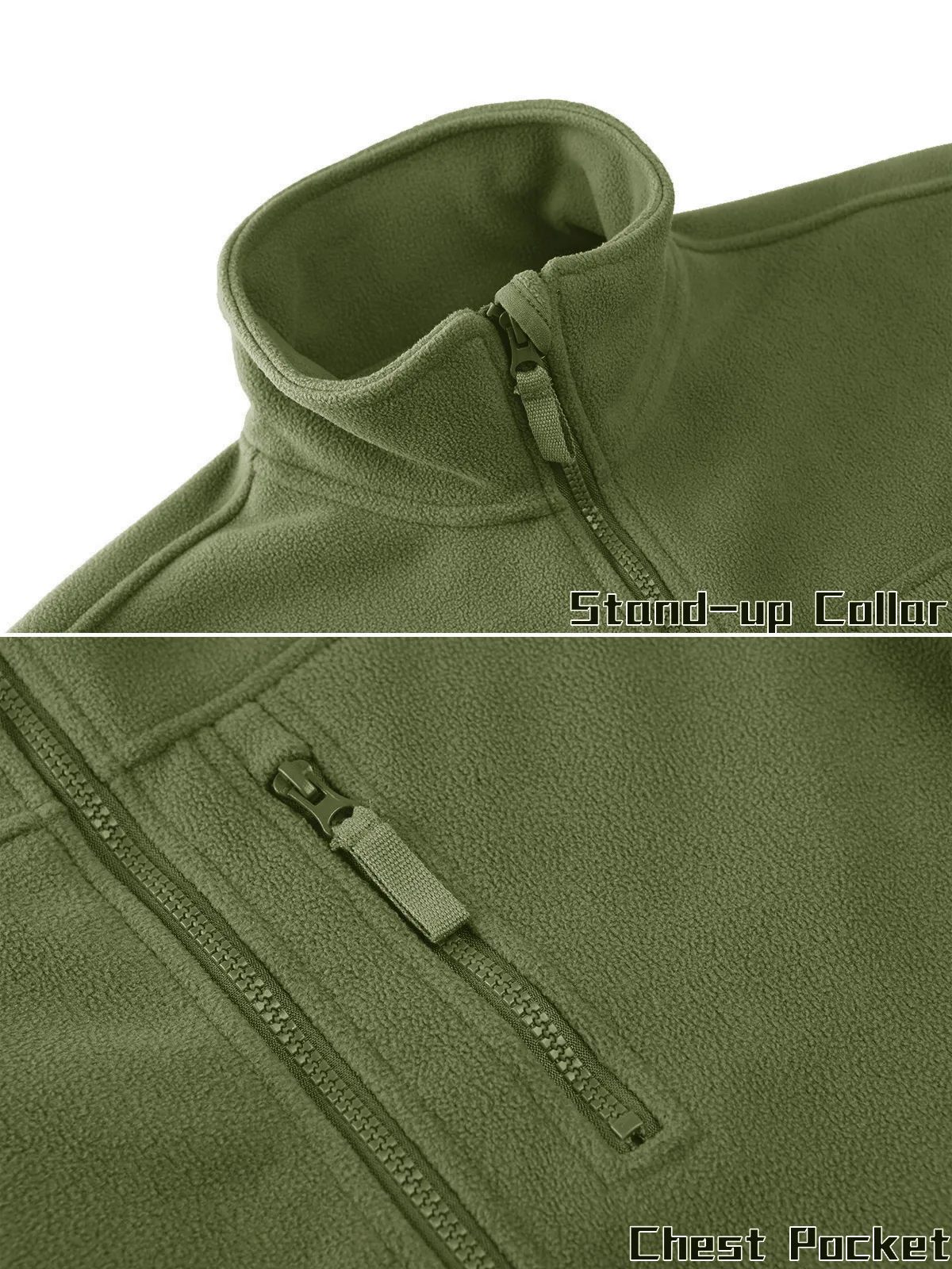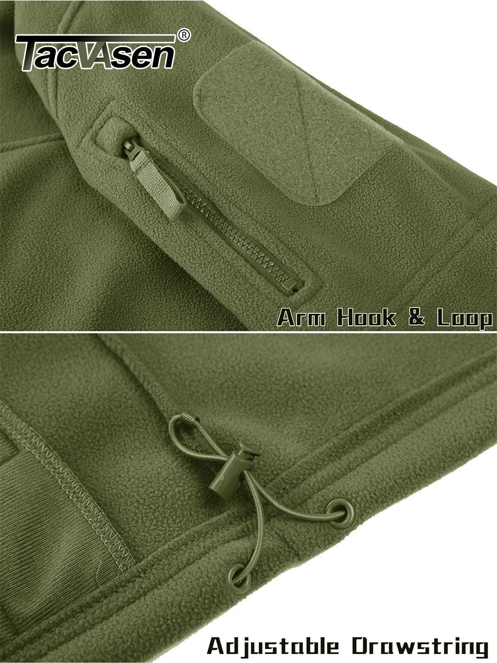 TACVASEN Full Zip Up Green Fleece Jacket Thermal Warm Work Coats Mens Zipper Pockets Jacket Hiking Training Outwear Windbreaker