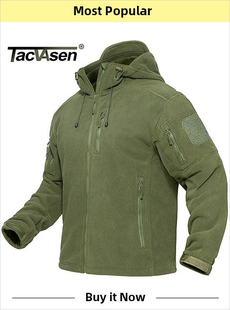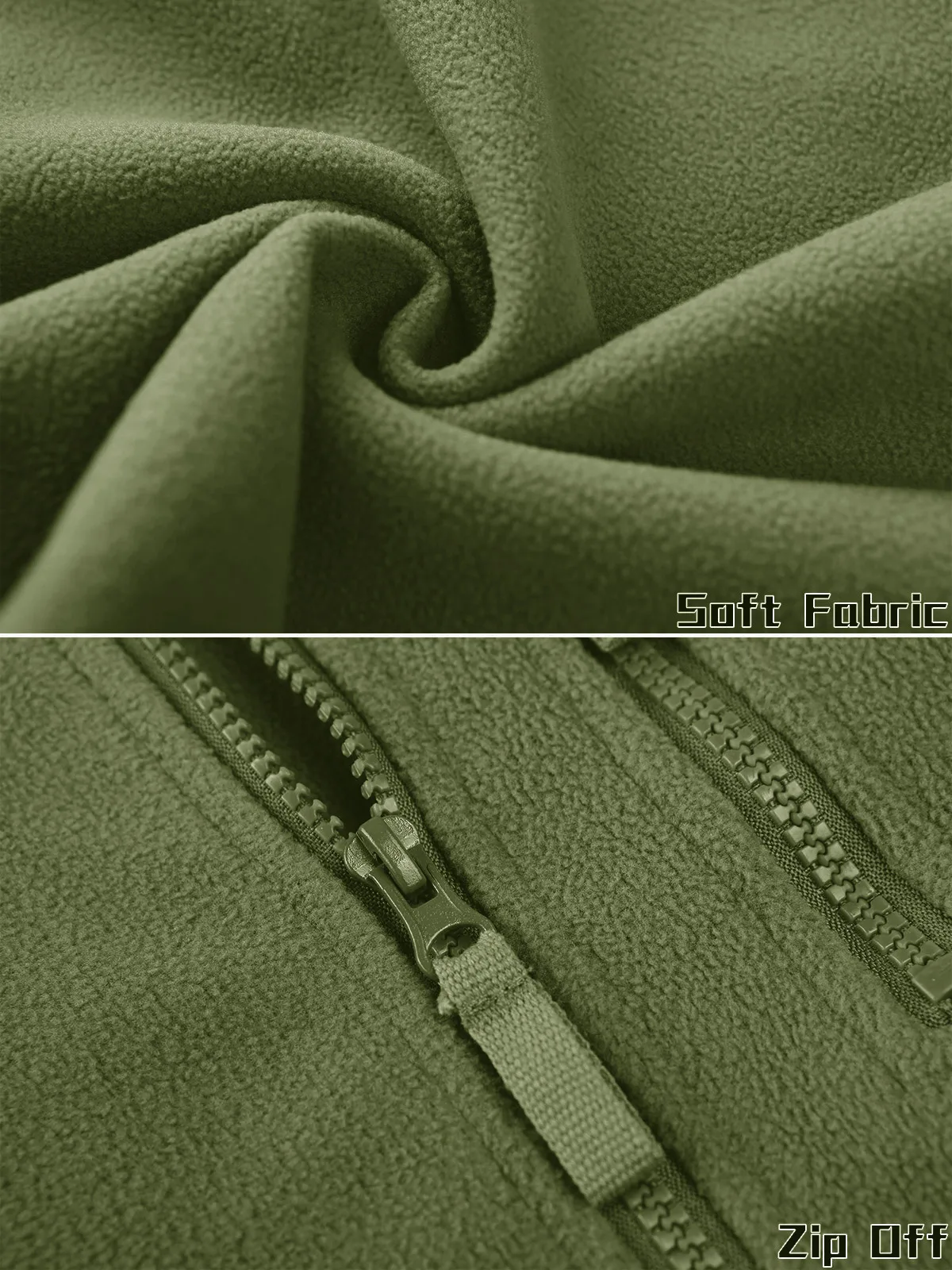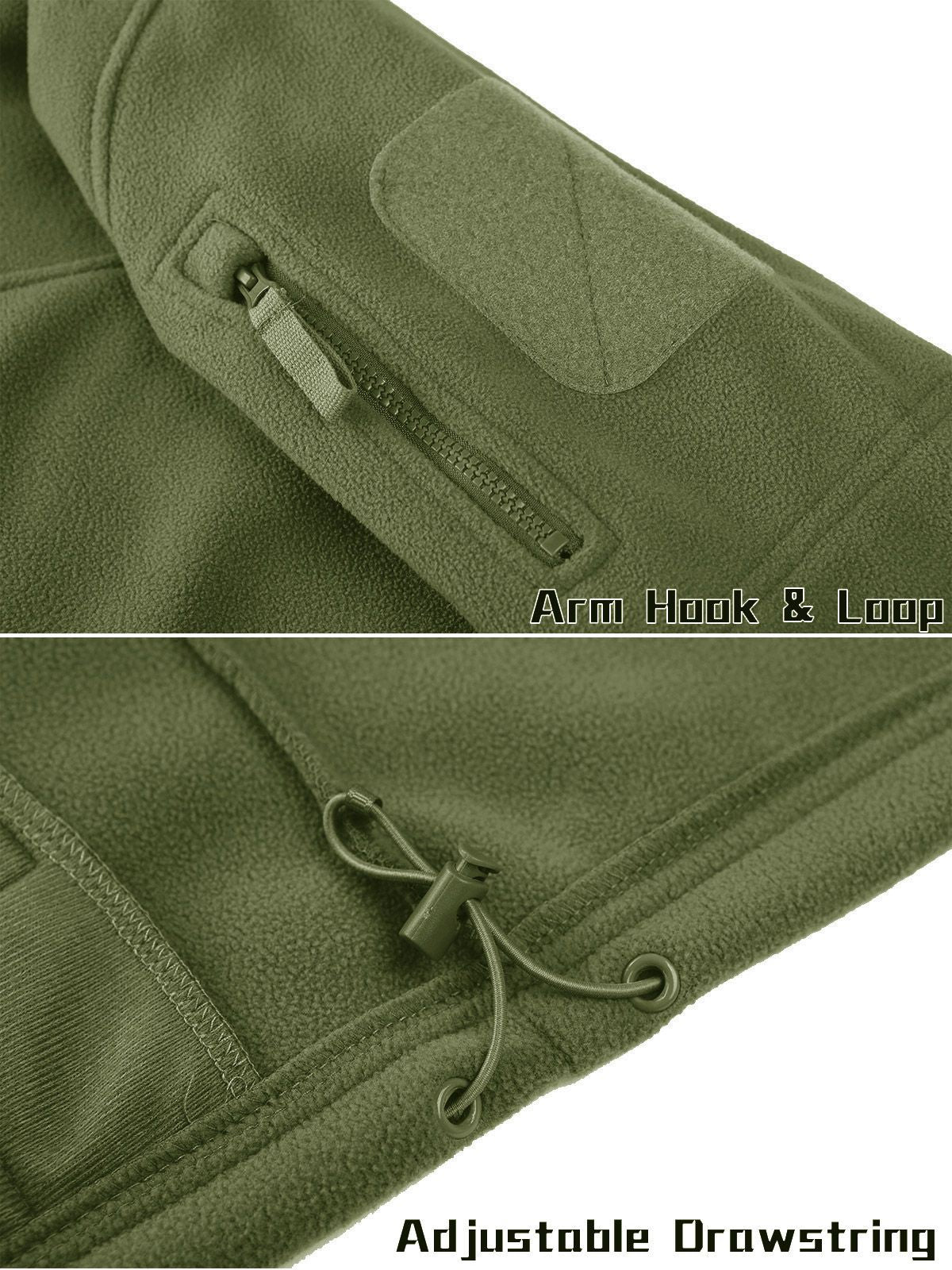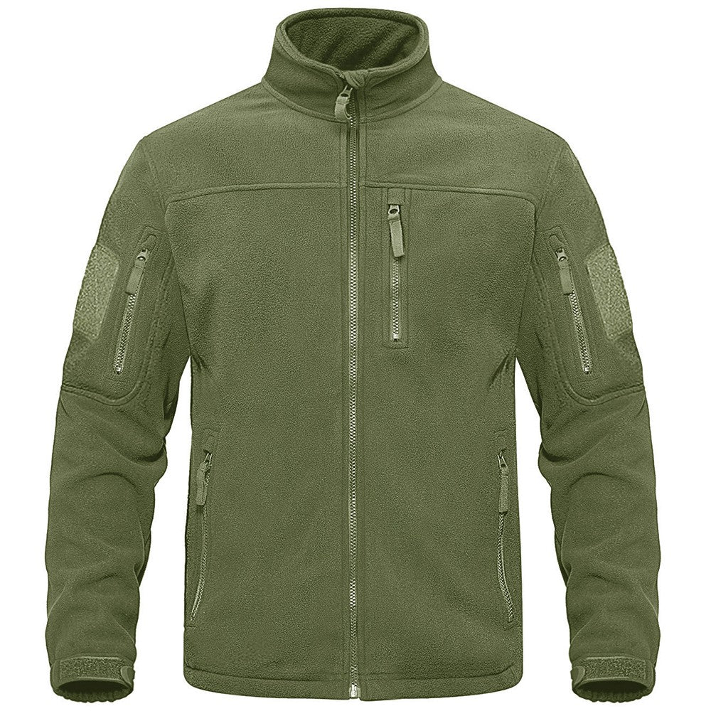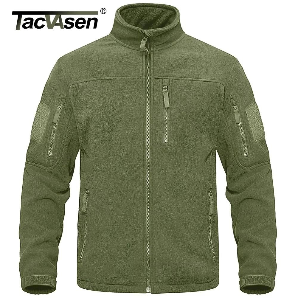 TACVASEN Full Zip Up Green Fleece Jacket Thermal Warm Work Coats Mens Zipper Pockets Jacket Hiking Training Outwear Windbreaker