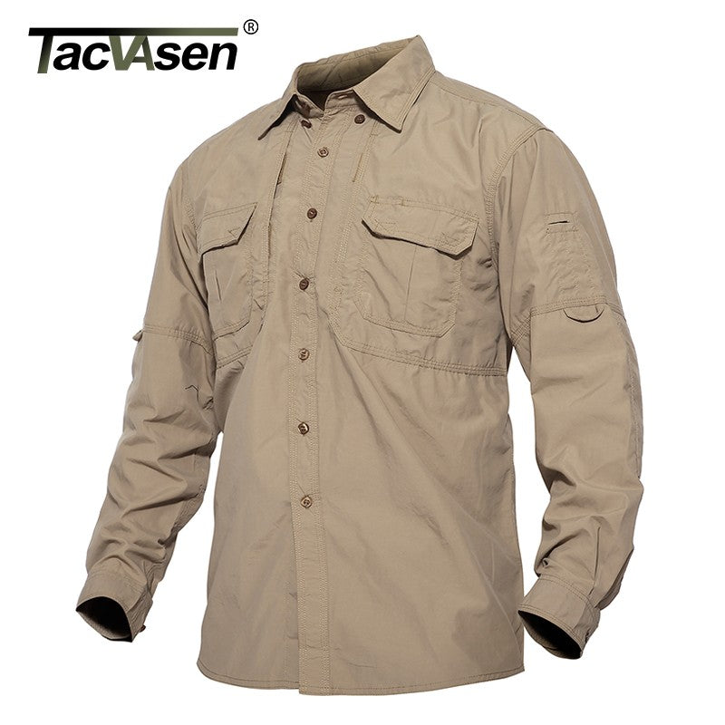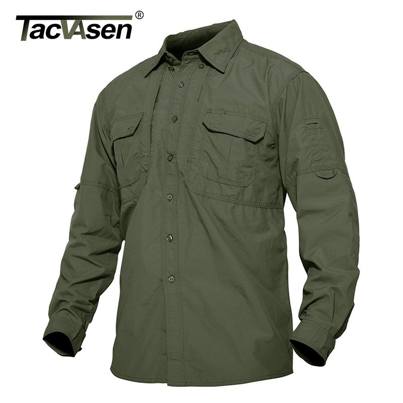 TACVASEN Mens Long Sleeve Shirts Summer Lightweight Quick Drying Shirt Hiking Nylon Shirts Long Sleeve Outdoor Work Cargo Shirts