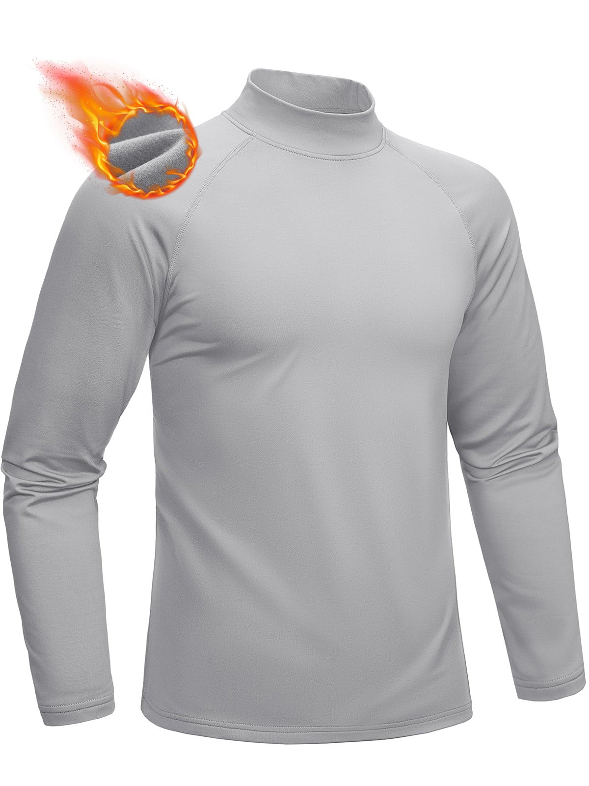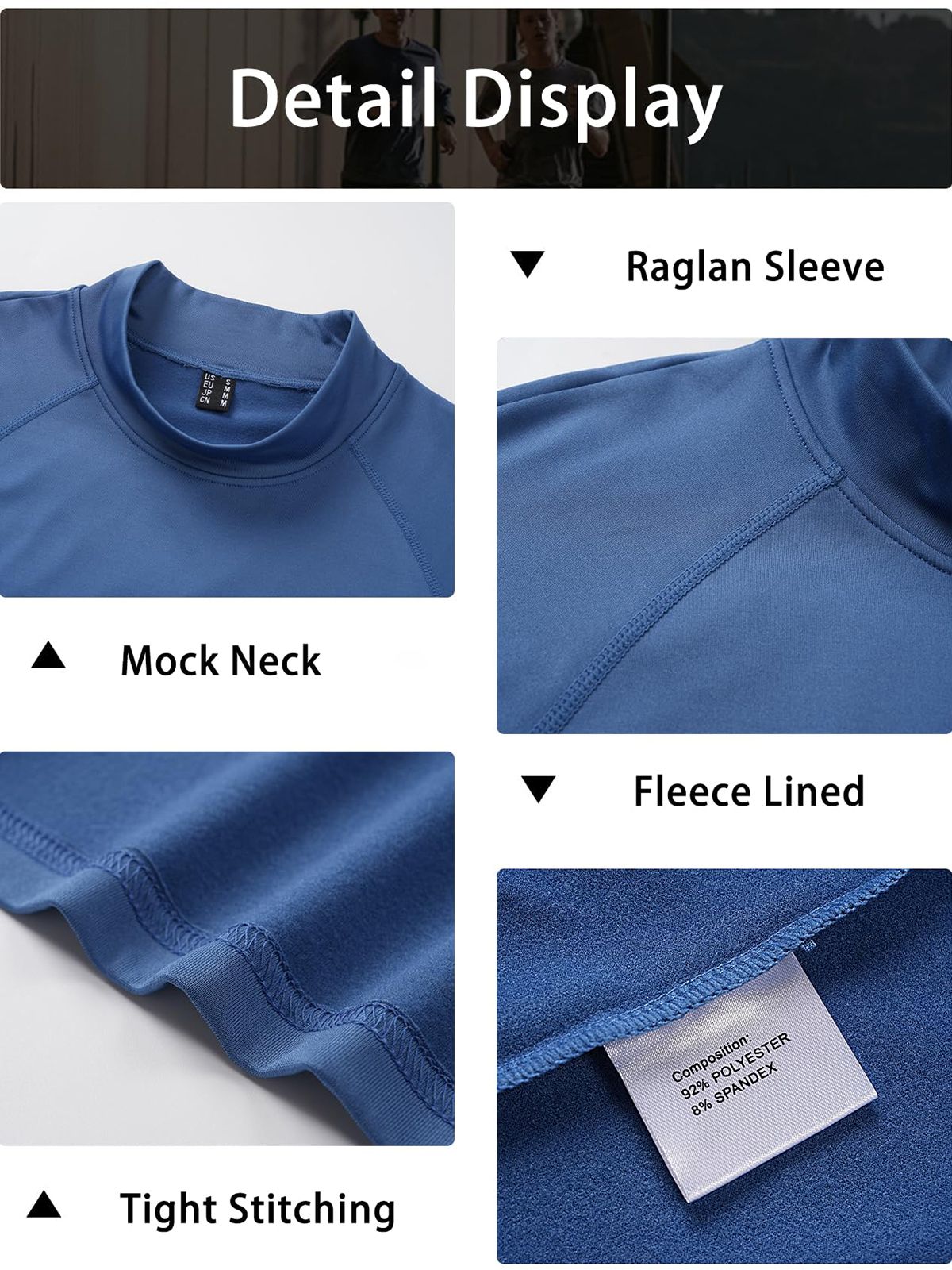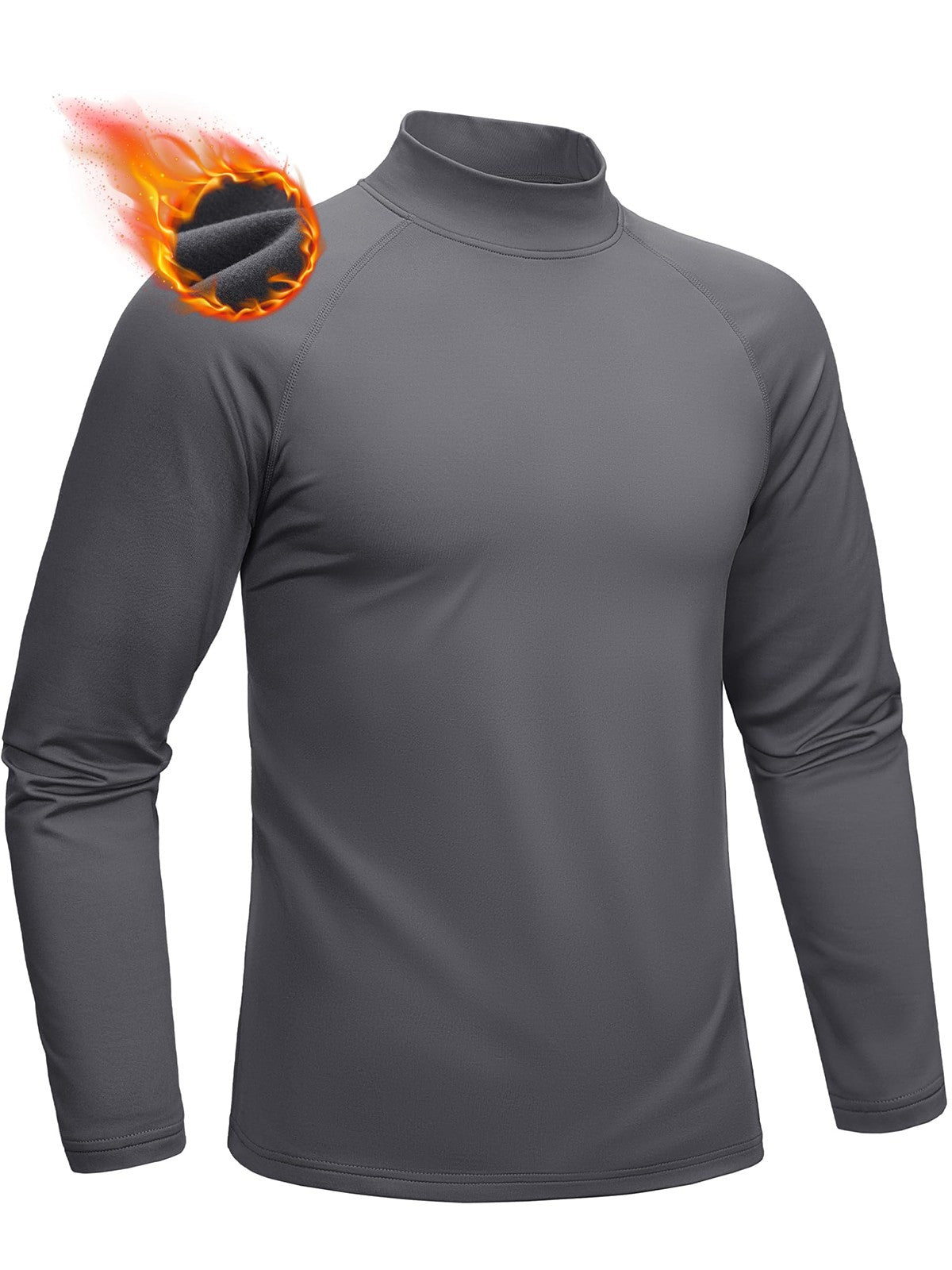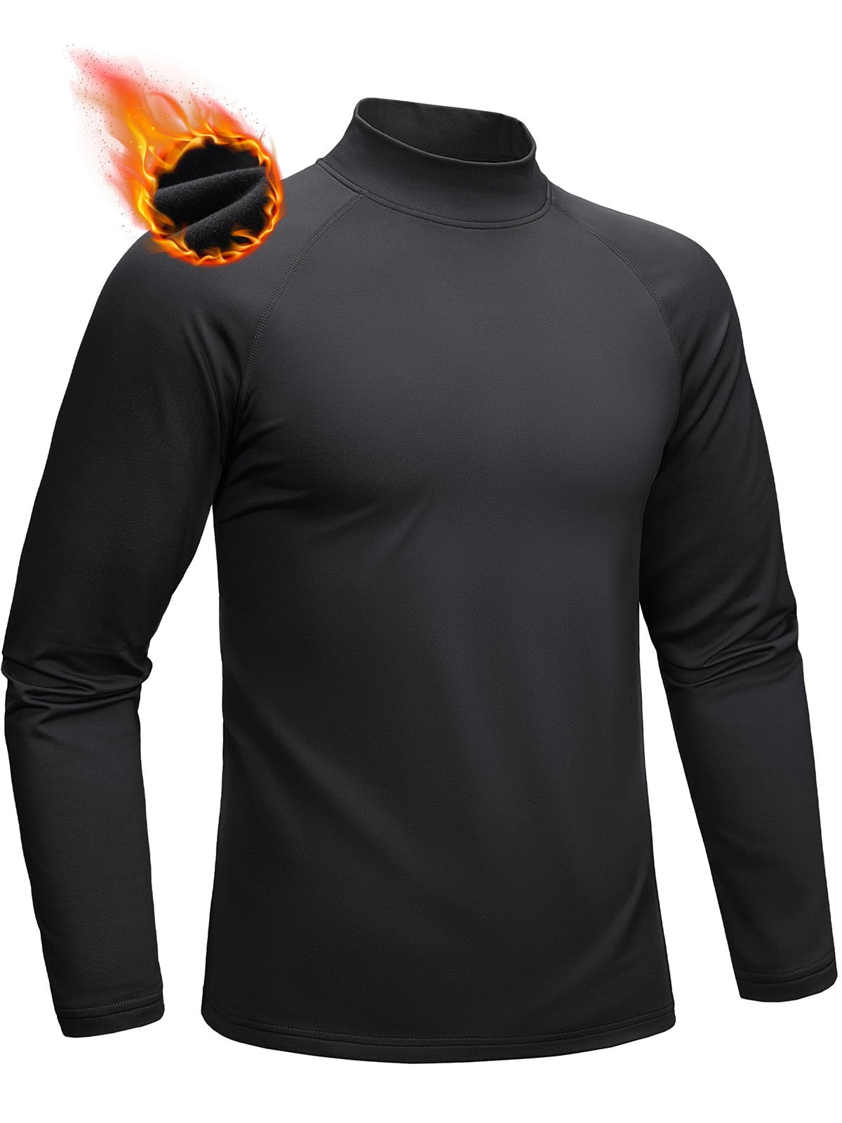 TACVASEN Mock Neck Thermal T-shirts Mens Micro-fleece Lined Long Sleeves Spring Athletic Workout Base Layer Pullover Tops Male