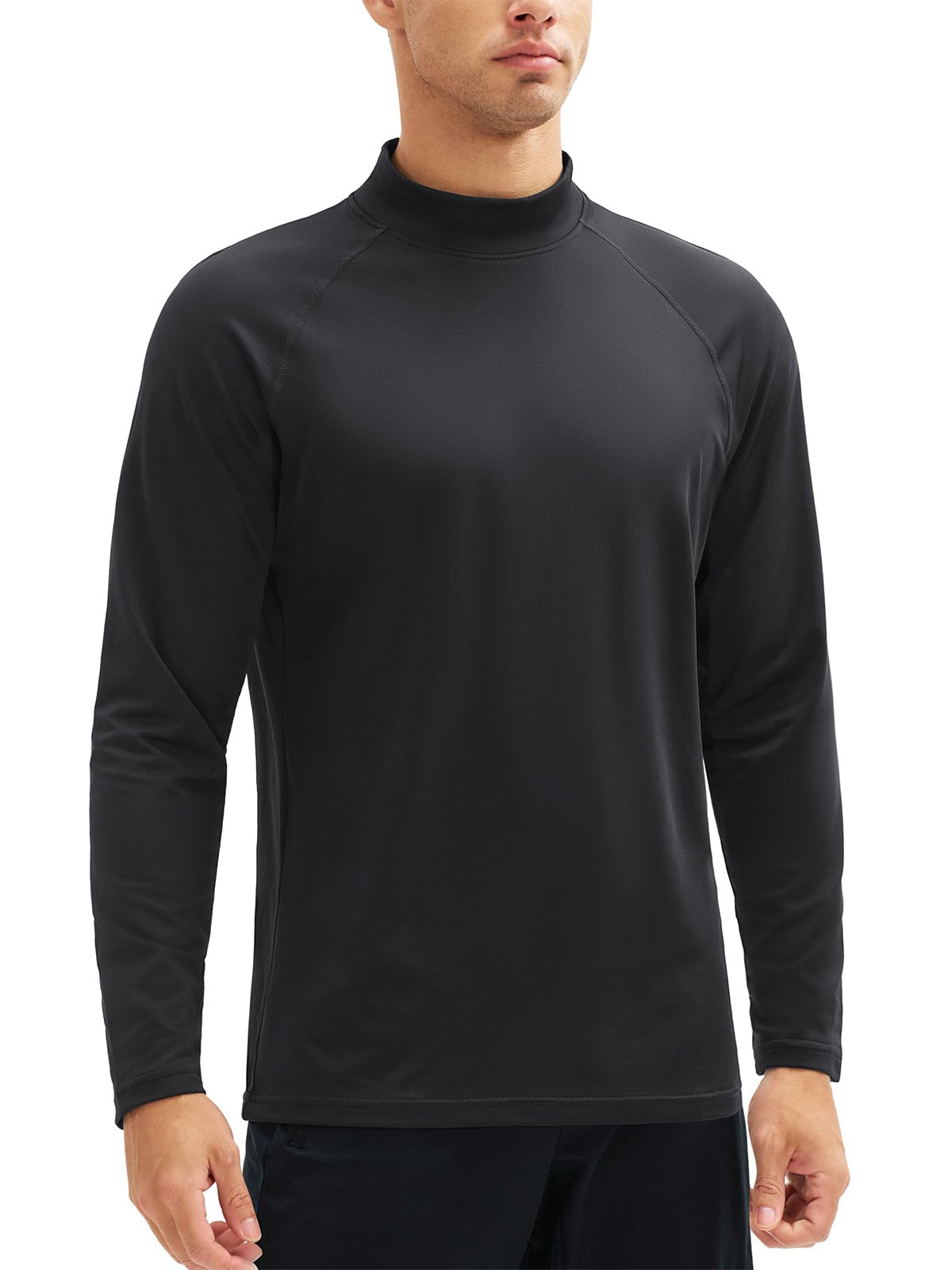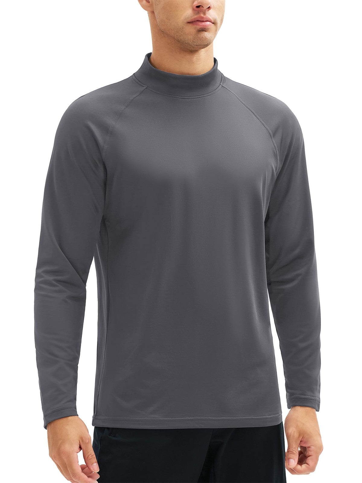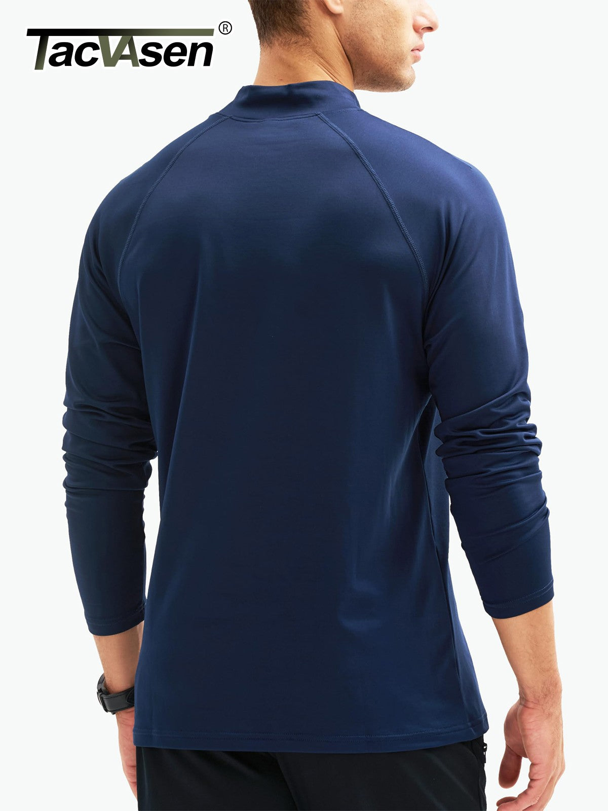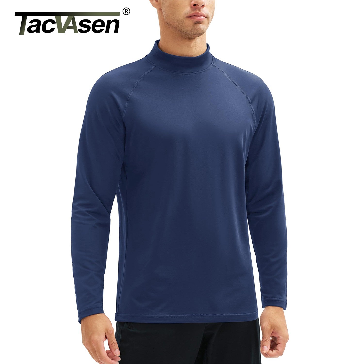 TACVASEN Mock Neck Thermal T-shirts Mens Micro-fleece Lined Long Sleeves Spring Athletic Workout Base Layer Pullover Tops Male