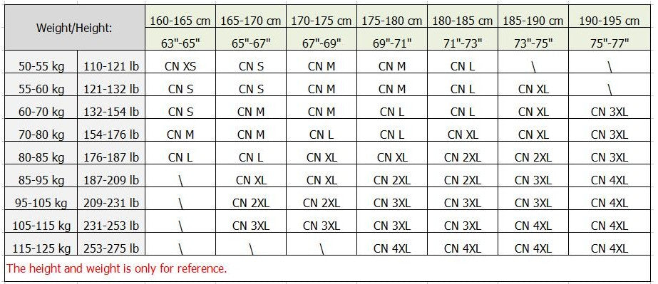1.Only for reference;please see following detail measure size table, Choose Jacket size as Height, Weight, Shoulder,Sleeve,Bust,Length.