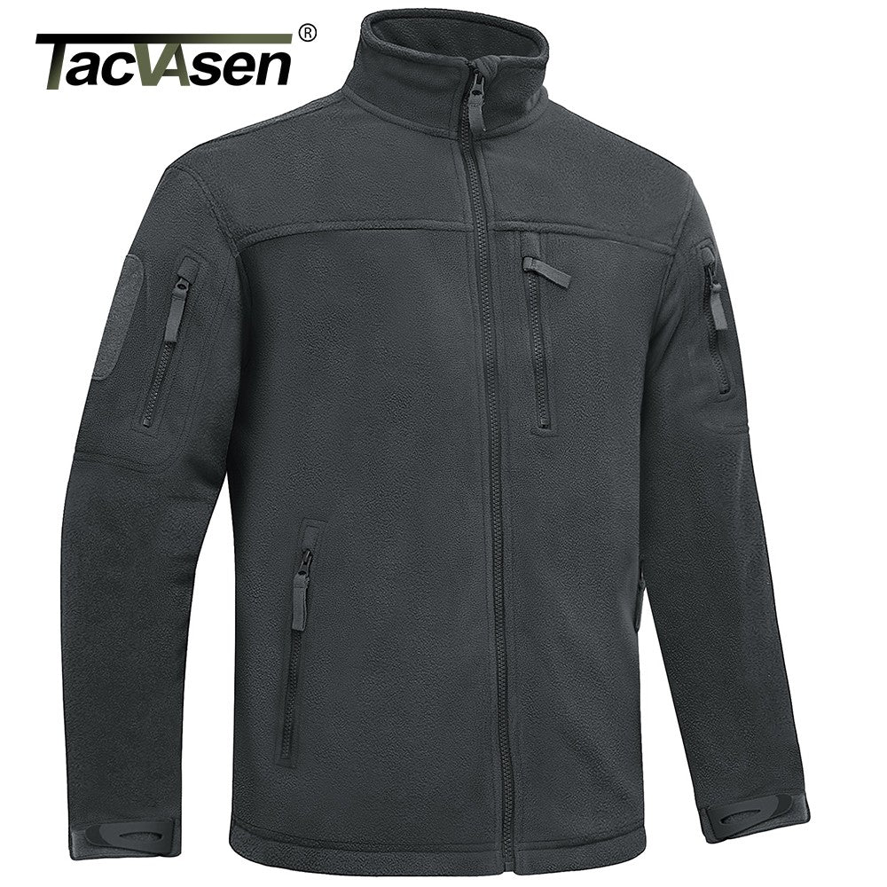 TACVASEN Winter Fleece Jacket Mens Zipper Pockets Work Jacket Thermal Warm Full Zip Fishing Hiking Coats Outwear Man Windbreaker