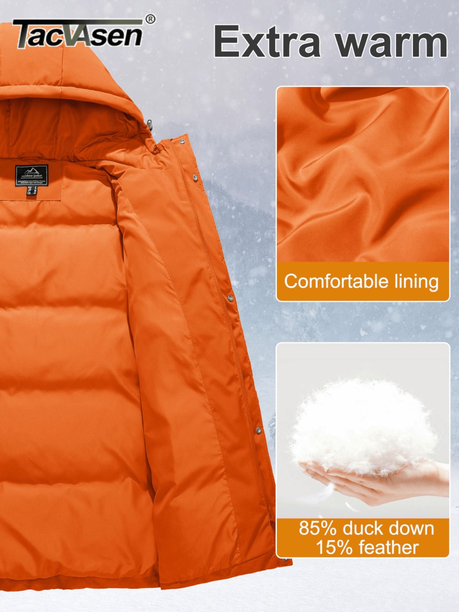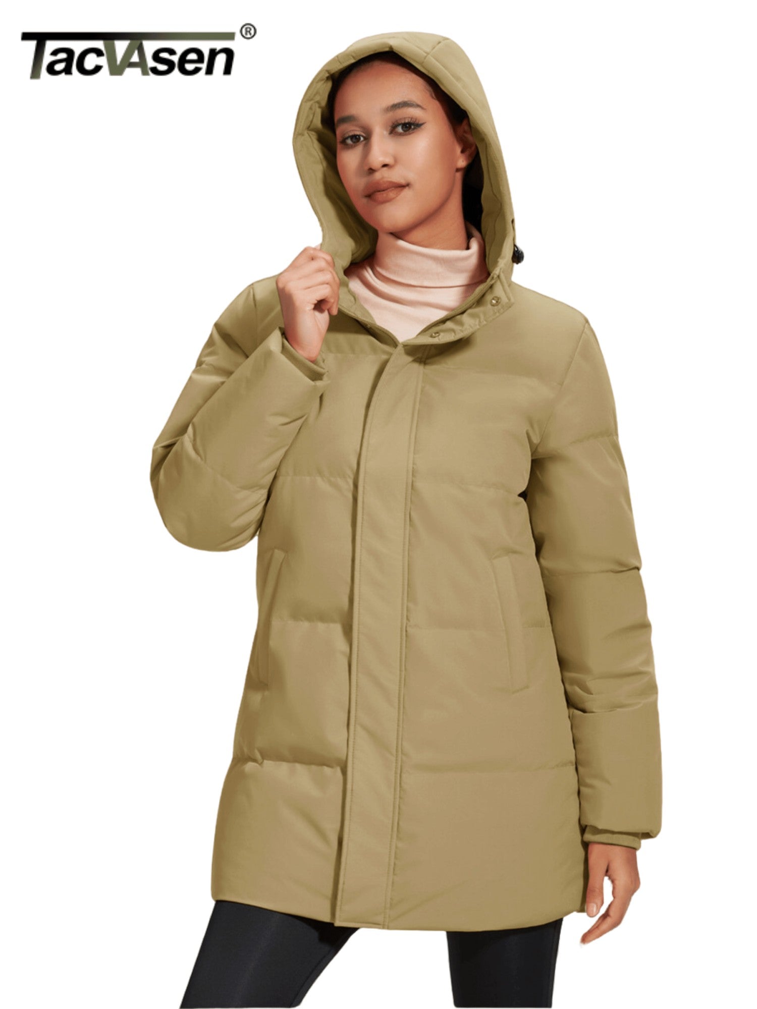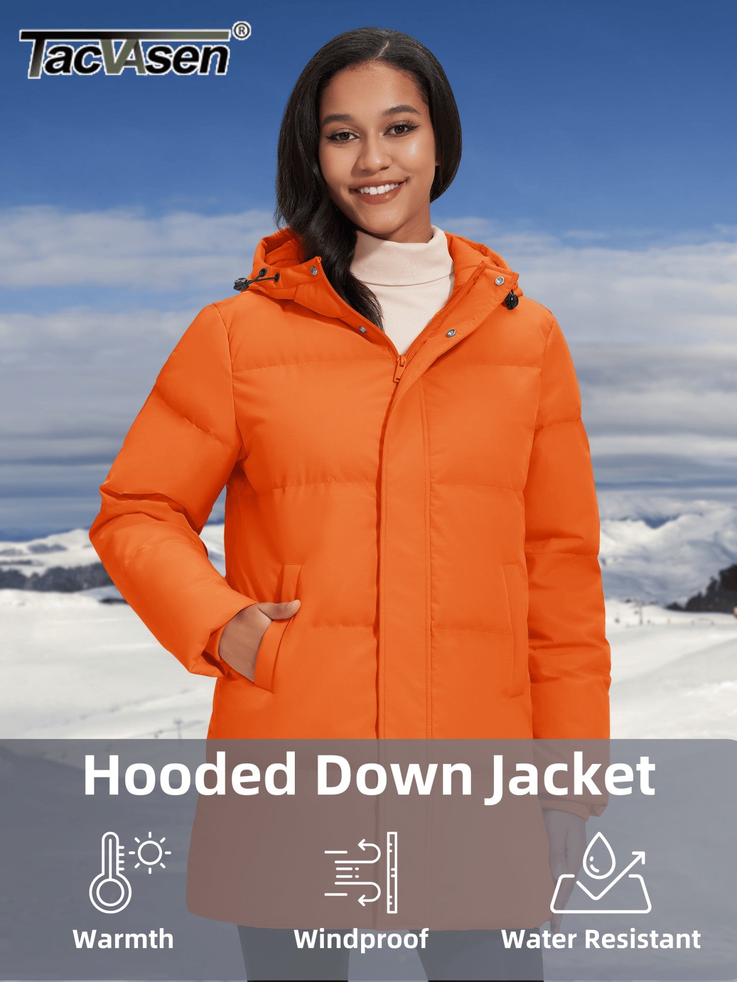 TACVASEN Winter Quilted Duck Feather Down Jackets Womens Padded Puffer Warm Hooded Long Coats Thermal Waterproof Thick Outerwear