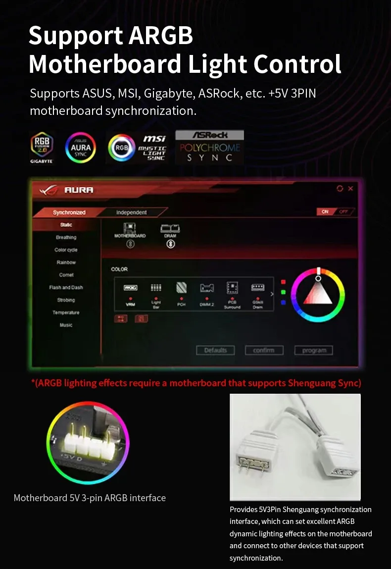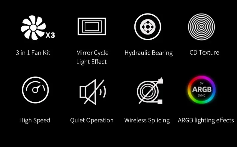 TEUCER JM-5 Case Fan 120mm 5V 3Pin ARGB Mirror Light Effect Cooling Fan PWM 800 to 2000RPM CD Texture Water Cooling Radiator Fan