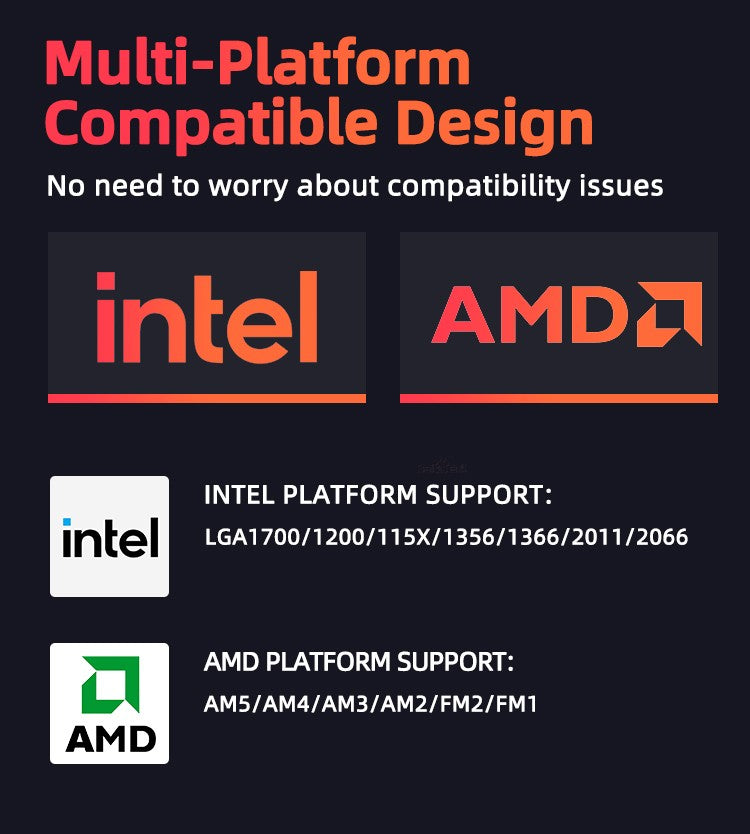 Wide compatibility: Comprehensive support for the latest AM5, AM4, AM3 and Intel's LGA1700, 1200, 1150, 2011 and other mainstream CPU socket platforms ensures maximum flexibility and future applicability when upgrading or building new systems.