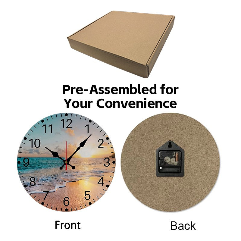 The Beach Wooden Round Silent Hanging Wall Clock, Suitable For Living Room, Office, Study Room, Bedroom, Home Decoration