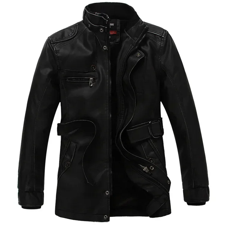 Thick Warm Cashmere Men Outwear Fleece Fur Collar Windbreaker Coats Men's Military Tactical Leather Jackets Long Jacket Men
